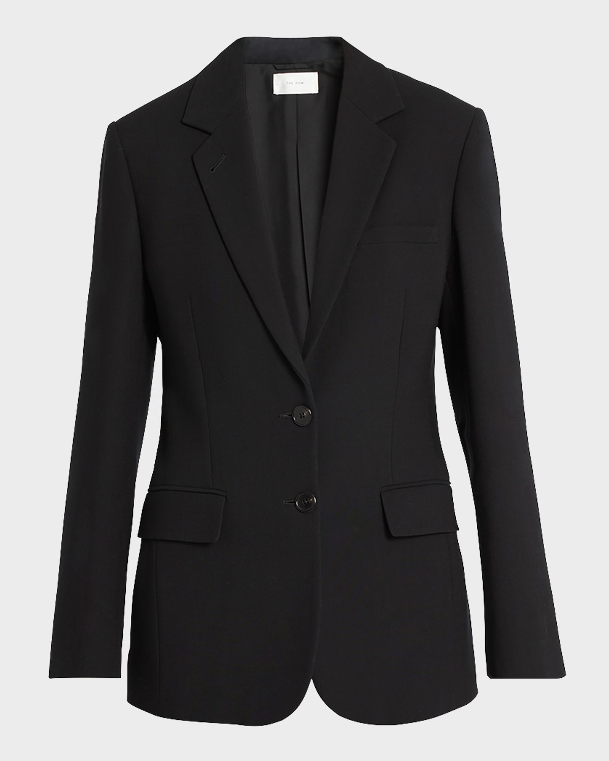 THE ROW "Linda" jacket Notch lapels; singlebreasted front Long sleeves; button cuffs Chest welt pocket; side flap pockets Straight fit Centerback vented hem Virgin wool Lining: Silk Made in Italy