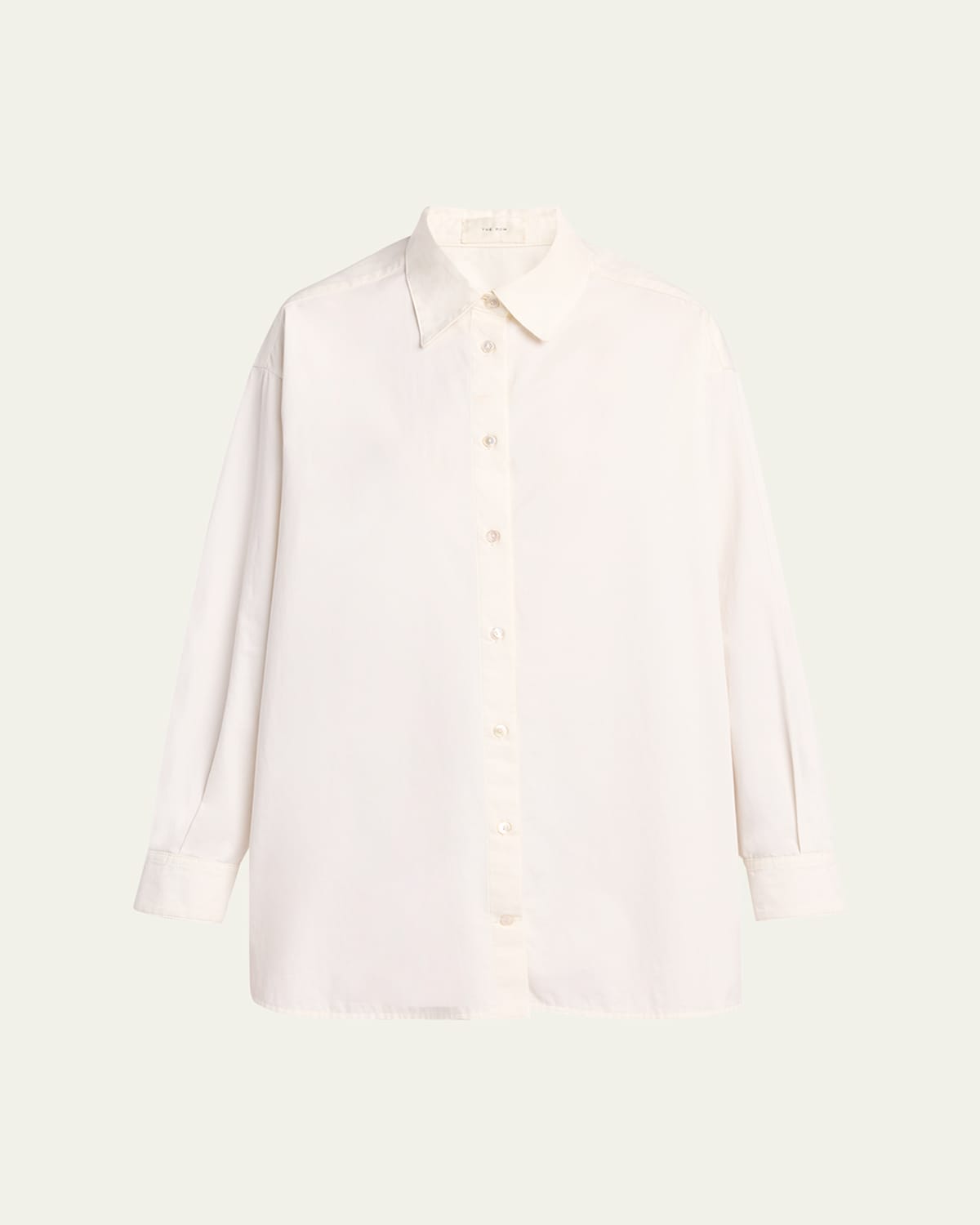 THE ROW "Luka" shirt in a cashmereblend Point collar; button front Long sleeves; button barrel cuffs Oversized fit Cotton/cashmere Made in Italy
