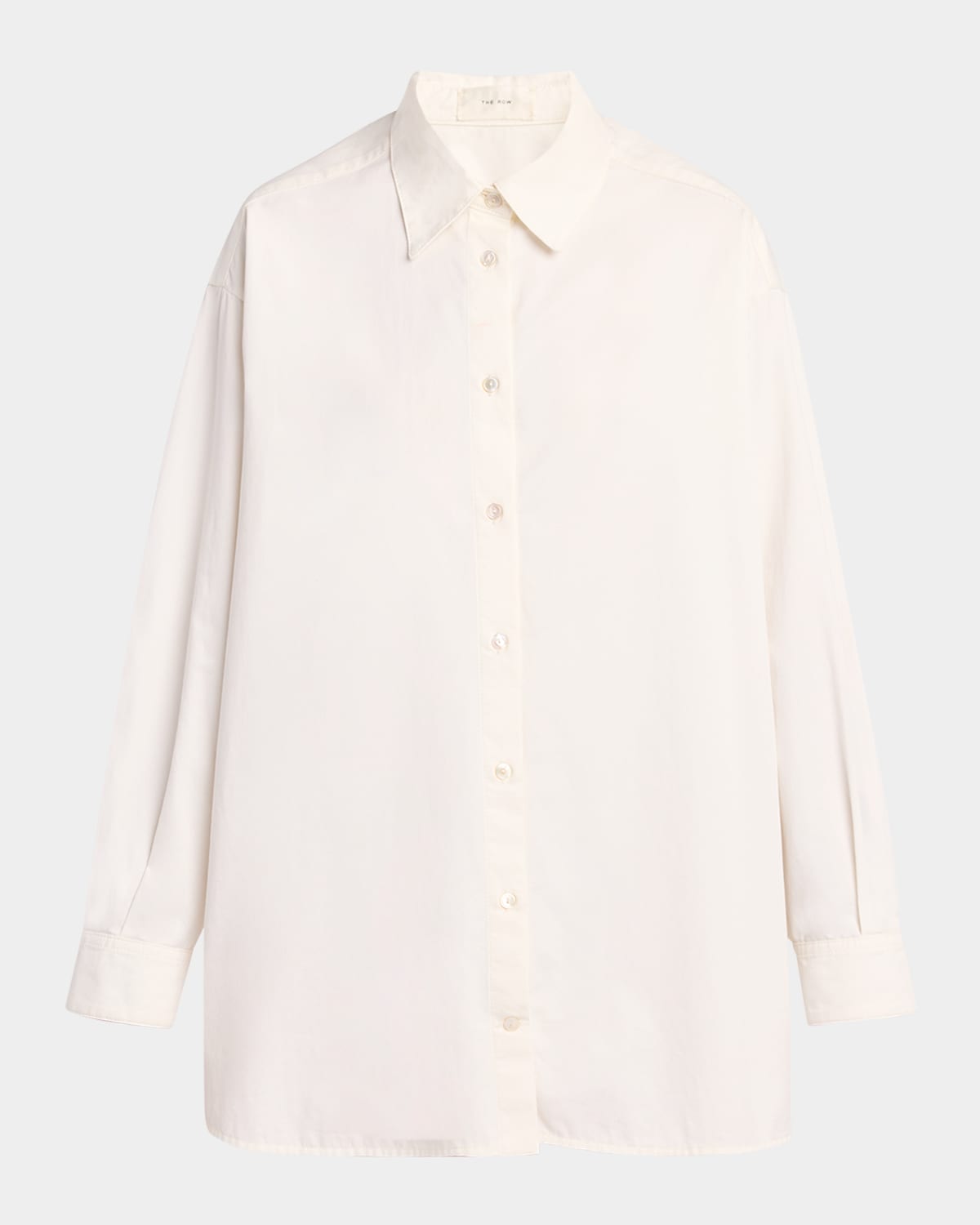 THE ROW "Luka" shirt in a cashmereblend Point collar; button front Long sleeves; button barrel cuffs Oversized fit Cotton/cashmere Made in Italy