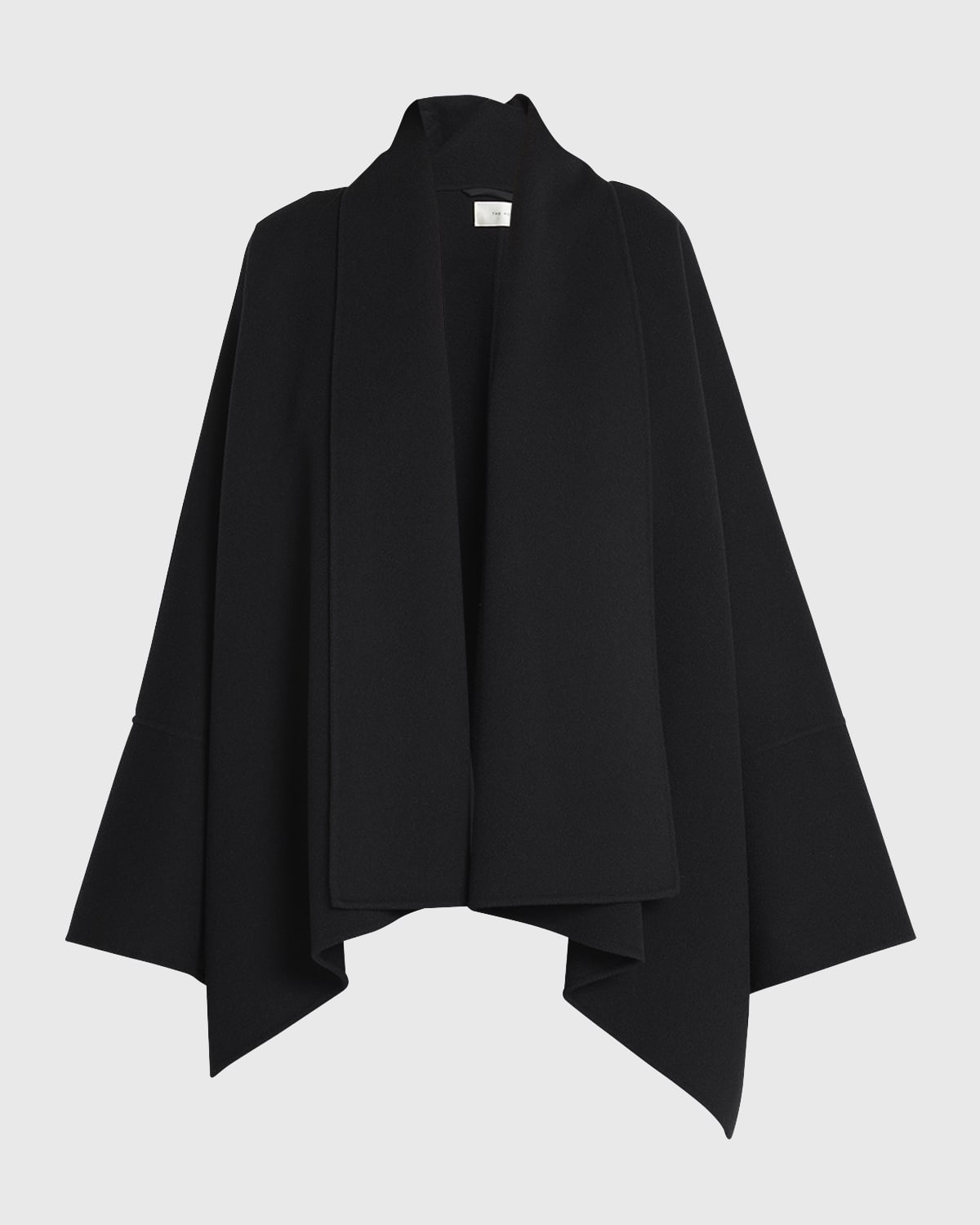 THE ROW "Mavis" knit coat Shawl collar; open front Long sleeves Loose fit Handkerchief hem Cashmere Made in Italy