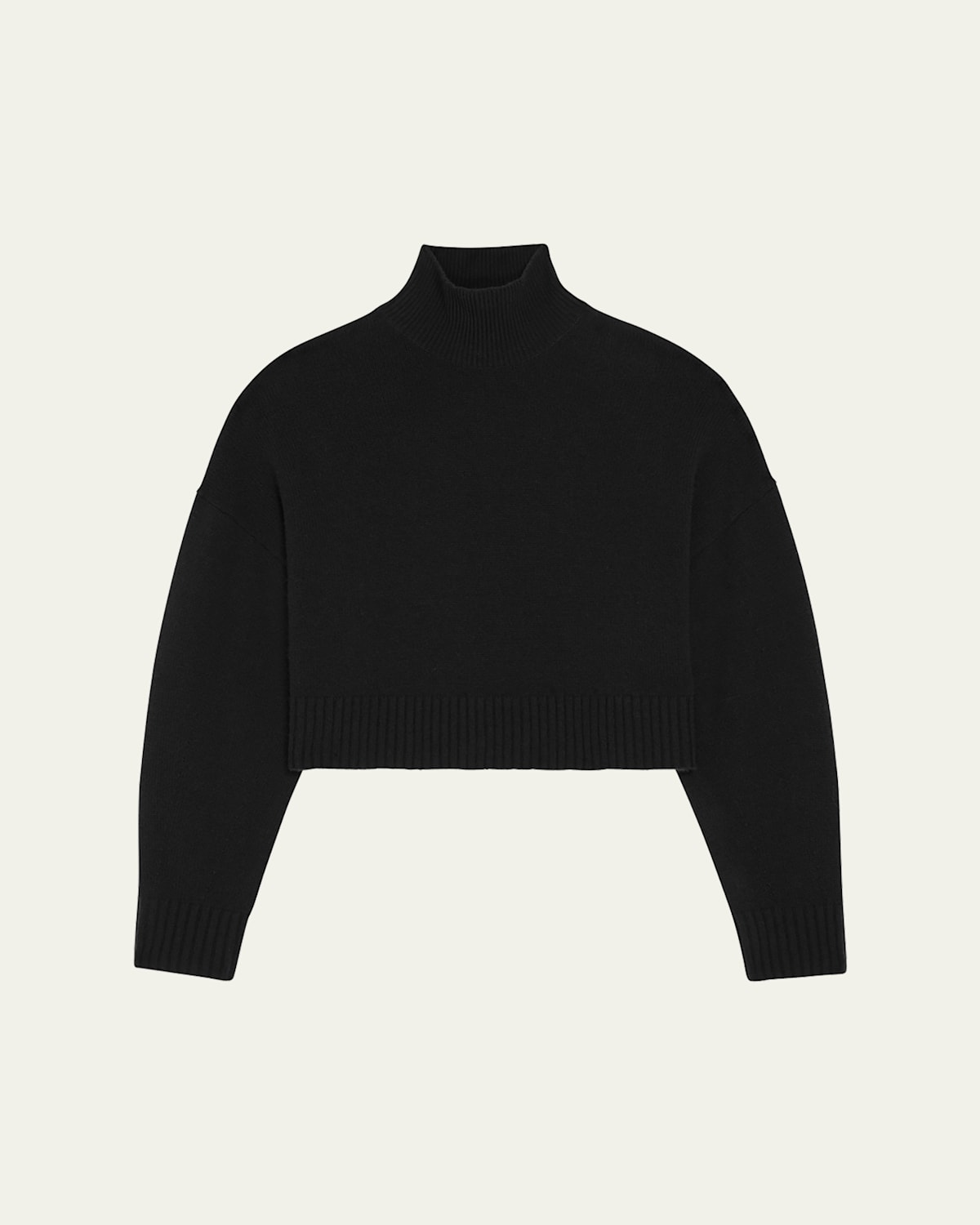 Theory cozy knit sweater defined by dropped shoulders and ribbed edges Turtleneck Long sleeves Relaxed fit Cropped length Pullover style Cashmere Imported
