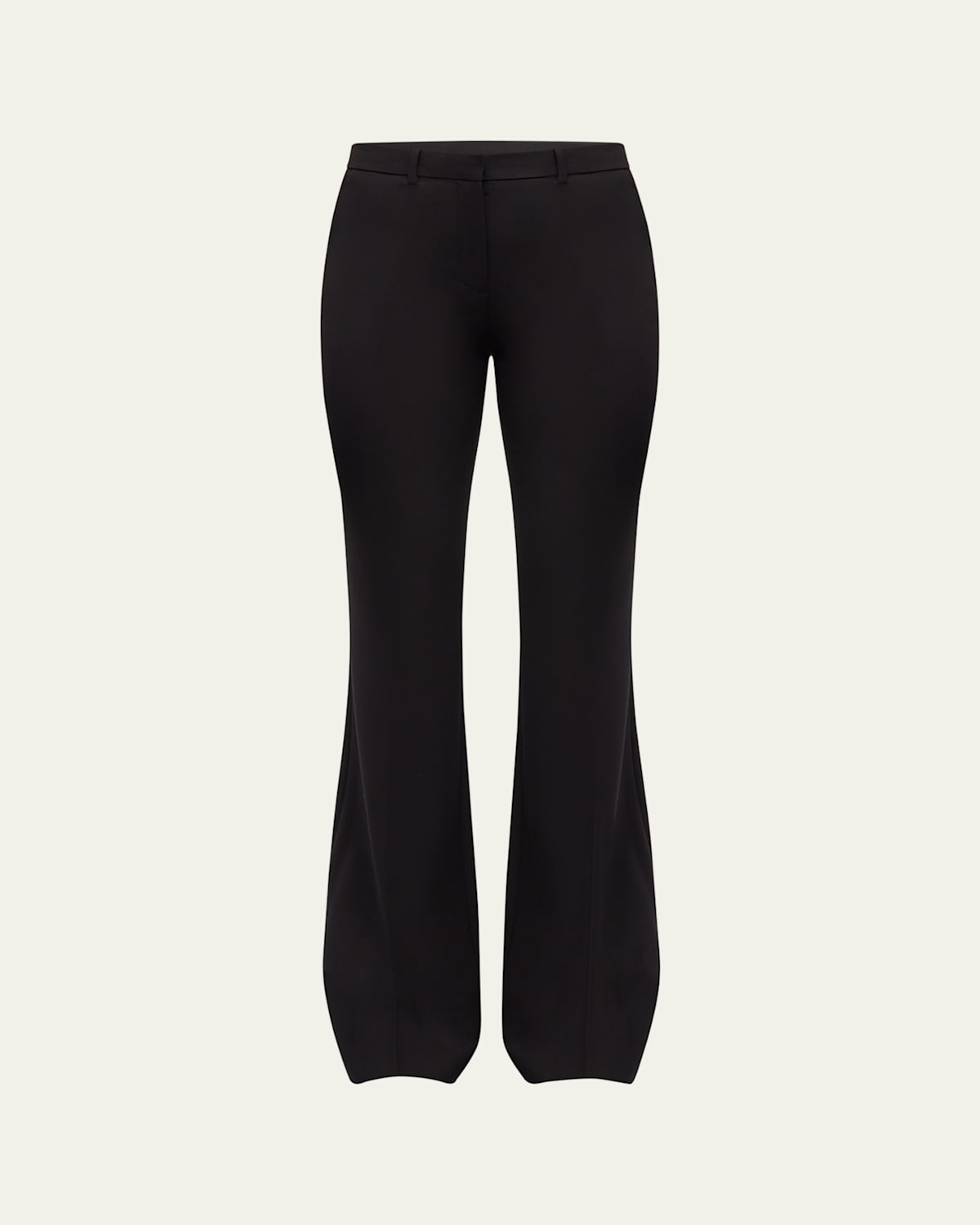 Theory "Demitria" Good Wool pants. Approx. measurements: 35" inseam; 22" leg opening; 10" front rise; 15" back rise, size 8. Mid rise; darts at back. Side slip pockets; back welt pockets. Fitted through straight legs. Full length hem. Hook/zip fly; belt loops. Wool/spandex. Care note: Do not wash, bleach, or tumble dry. Cool iron if needed. Dry clean with any solvent except trichloroethylene. Imported.