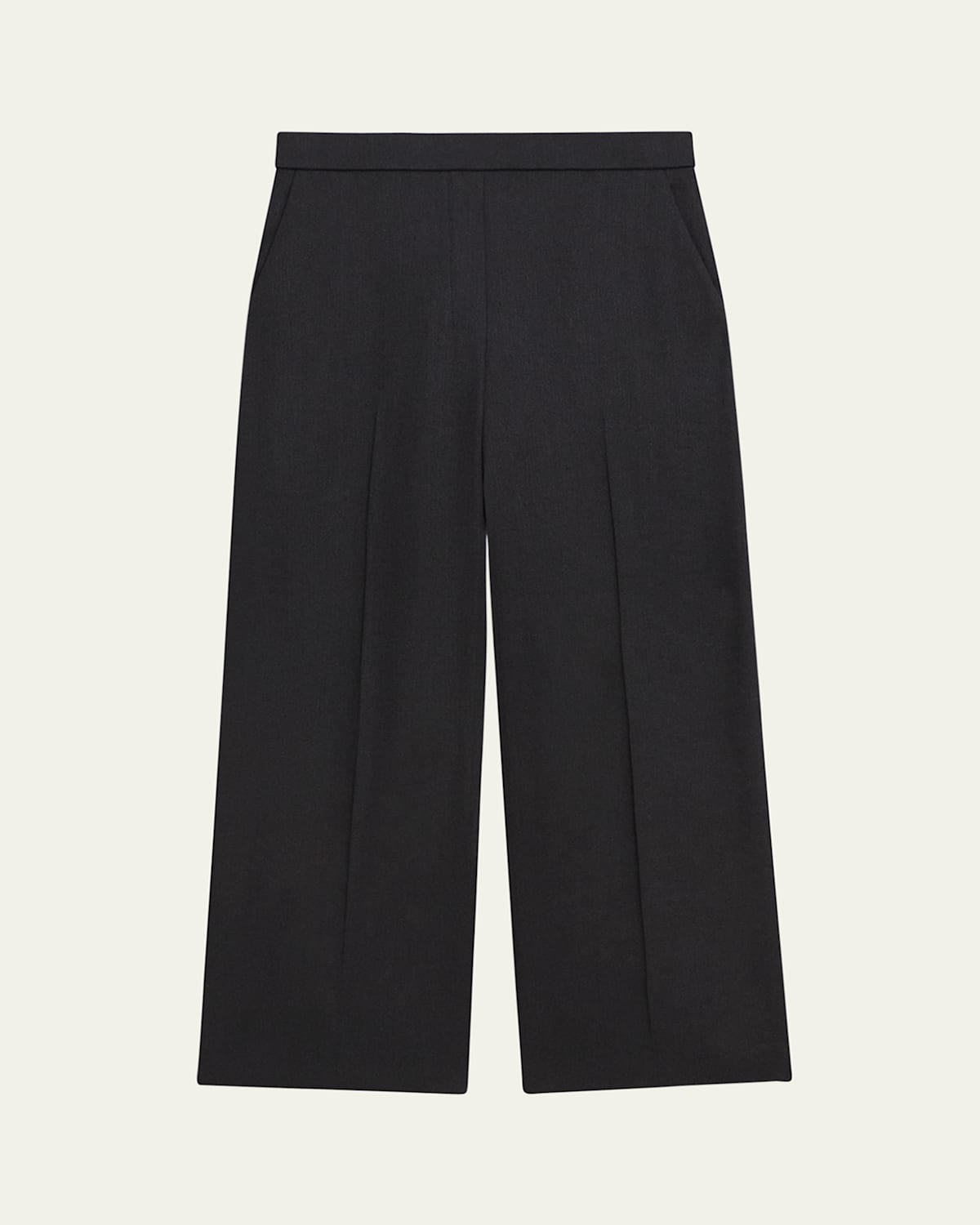 Theory relaxed pants with slash front pockets and welt back pockets Approx. measurements: 10.5" rise; 26" inseam; 36.5" outseam Mid rise; flat front Relaxed fit Straight legs Cropped above ankles Pullon style Linen/viscose/elastane Dry clean Imported