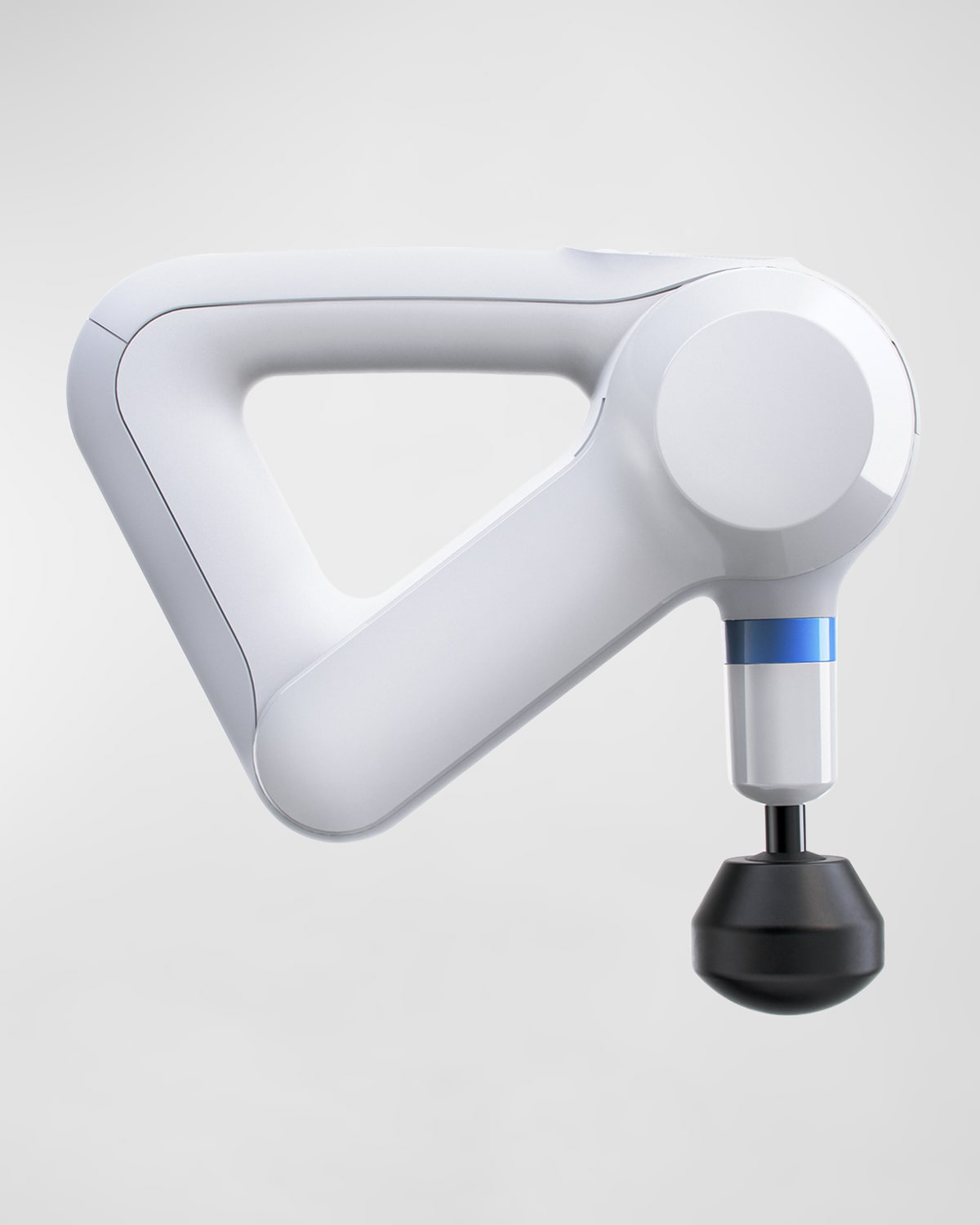 Reduce pain Increase blood flow Break up scar tissue Decrease lactic acid Release muscle spasms Increase lymphatic flow Improve range of motion Improve body awareness Make recovery more efficient and effective (which is one of the reasons clients have gotten their own Theragun for use between sessions in both the Clinic and training) Key Features: QuietForce Technology QX65: Proprietary brushless motor delivers up to 40 lbs. of additional nostall force while running quieter than a standard electric toothbrush. Ergonomic MultiGrip: Patented ergonomic handle design allows you to hold the device in different ways while reducing strain on your hands, wrists, and arms. OLED Screen with Force Meter: Shows how much pressure you are applying and how close you are to stalling out the motor. Customizable Speed Range: Comes with five builtin speeds (1750, 1900, 2100, 2200, 2400 percussions per minute) 120Minute Battery Life: Internal Lithiumion battery with 120 minutes of continuous use. Wireless charging enabled. Bluetooth® connection: Links to Therabody app to access customized routines based on activity