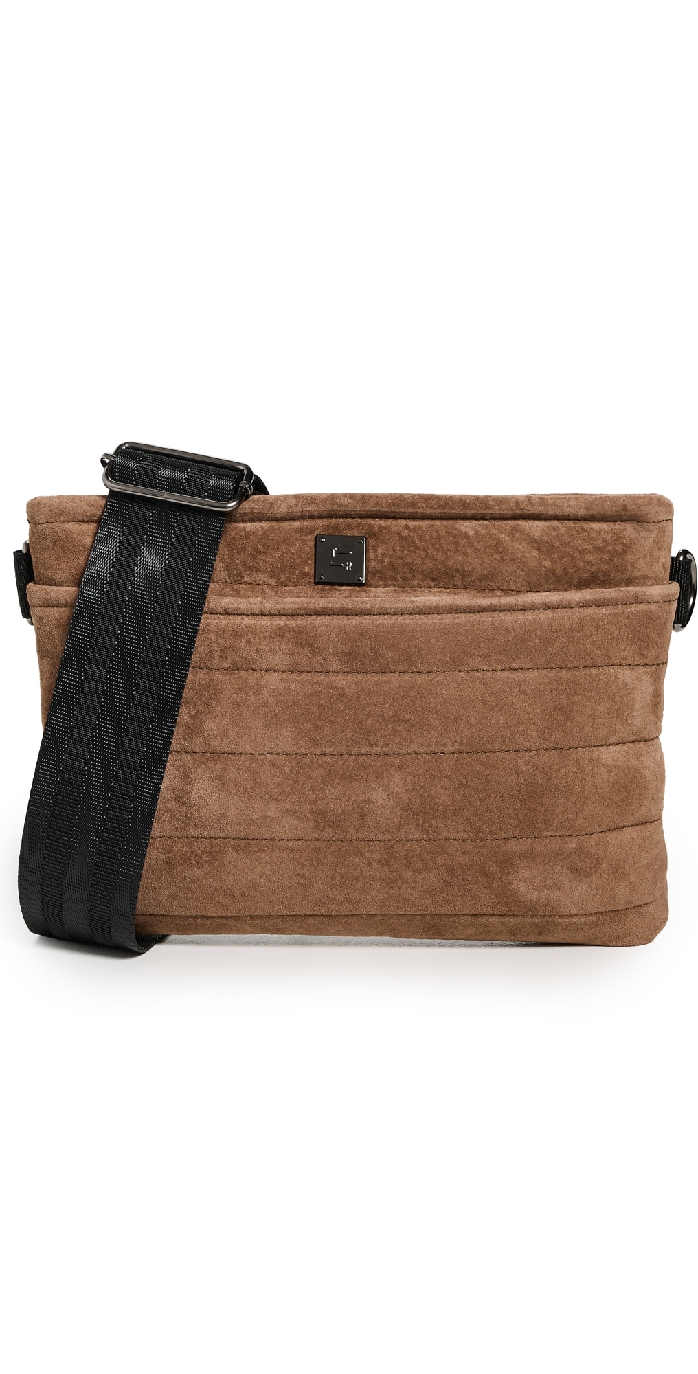 Suede. Quilted design. Zip closure. Patch exterior pocket. Adjustable straps. Lining: Technical weave. Weight: 13oz / 0.37kg. Imported, China. Measurements: Height: 7in / 18cm Length: 10.25in / 26cm Depth: 1.5in / 4cm Strap drop: 25.25in / 64cm Handle drop: 13.5in / 34cm