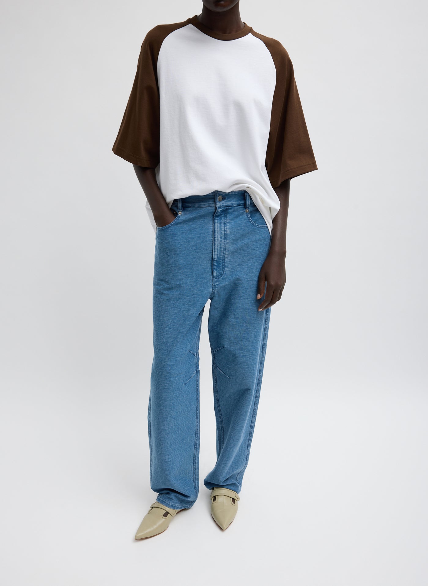 The Mica Jean merges the ease of a sweatpant with the polish of classic denim. Crafted from a soft yet structured denim interlock—a specialty knit fabric that looks woven to achieve amazing stretch with unmatched softness—this slouchy silhouette is designed for movement and comfort while maintaining a refined edge. Built-in snaps at the hem allow for easy proportion play and subtle, but not permanent, alteration. Pair it back to the Perfect Baseball Tee for a look that’s equal parts Chill, Modern, and Classic.