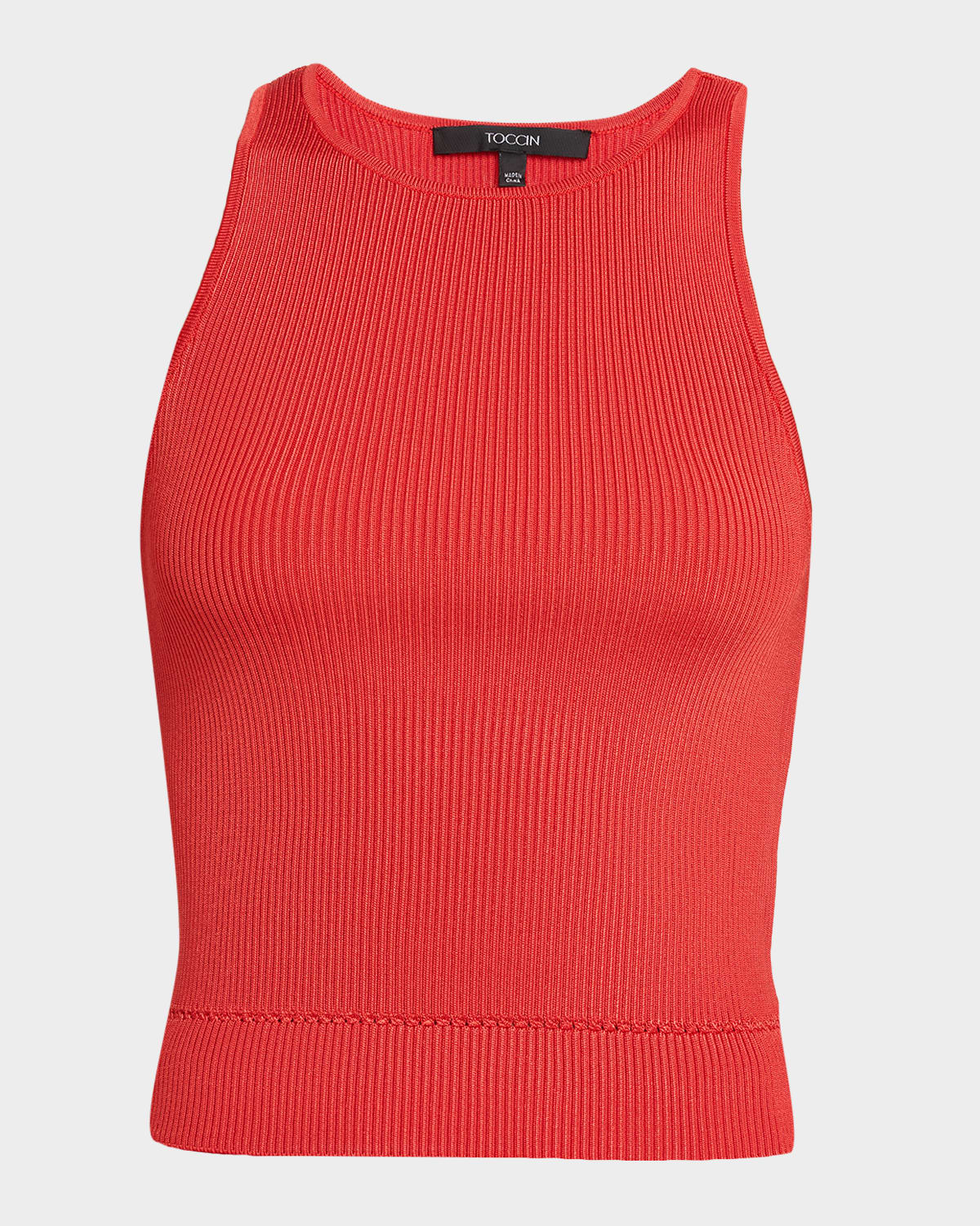 Crafted from a textural ribknit fabric, the Avery tank top by Toccin boasts a versatile racerback silhouette Approx. 19"L from shoulder to hem Crew neckline Sleeveless Slim fit Hip length Pullover style Rayon/cellulose acetate/polyester Unlined Dry clean Imported
