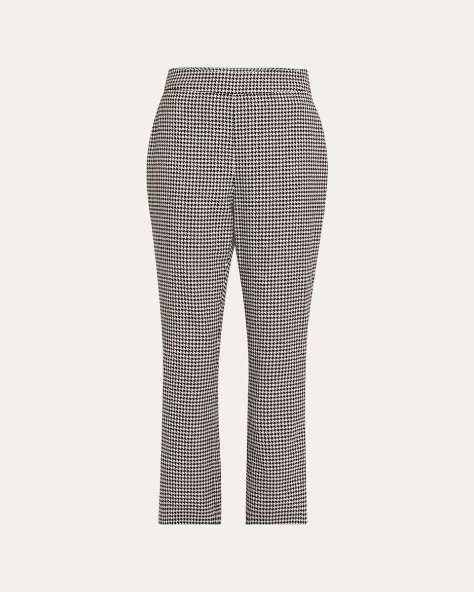 Toccin "Claire" houndstooth cigarette pants Approx. 9.8" rise; 28" inseam Mid rise sits high on hip Side seam and back welt pockets Cropped at the ankle Straight legs Side zip closure Polyester/wool/viscose Lining: Polyester Dry clean, hand wash or dry clean Imported
