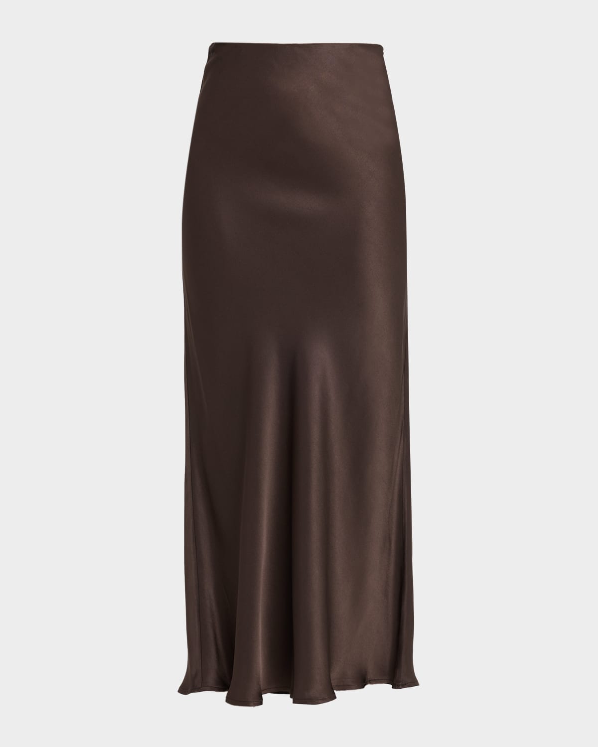 Designed for a fluid silhouette, the "Heidi" slip skirt by Toccin is crafted from biascut satin for a polished, versatile look Highrise waistband Hem falls below the knee Skirt falls straight from hip to hem Slipon style Acetate/polyester Hand wash or dry clean Imported