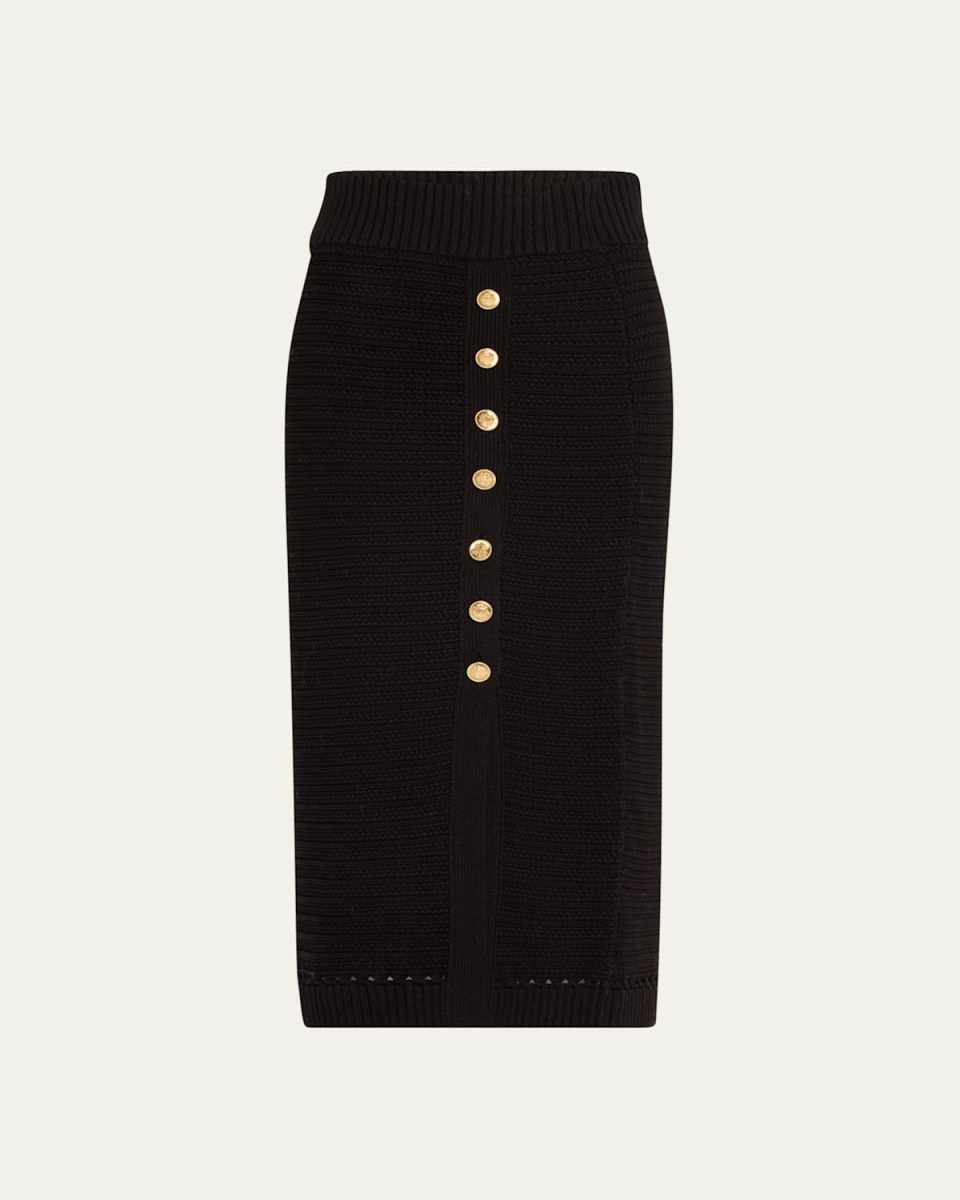 Toccin "Tani" pointelleknit skirt crafted from mercerized cotton Highrise waistband Hem falls below the knee Pencil style Front button closure Cotton Unlined Imported