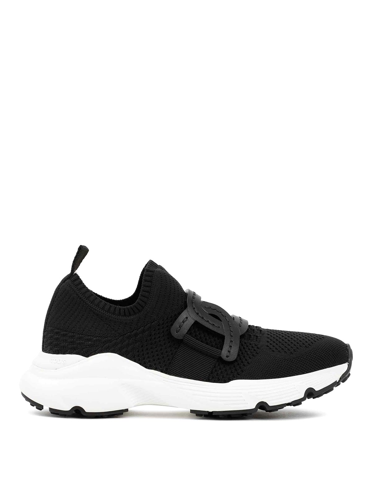 Baskets Tod's en tissu technique noir. Partie supérieure en tissu technique noir, design semblable à une chaussette, chaîne en cuir, détails en gros grain et semelle extérieure longue en caoutchouc. Détails du logo.