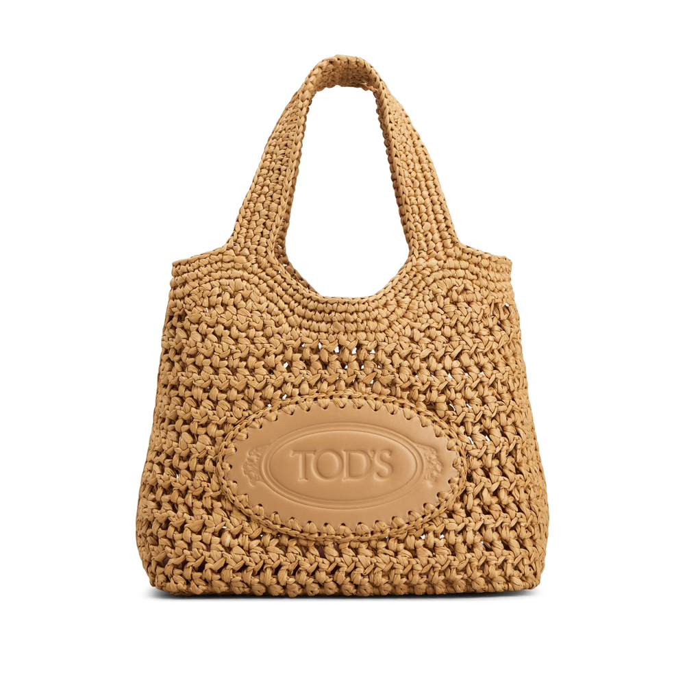 caramel brown two flat shoulder straps adjustable detachable shoulder strap debossed logo to the front crochet