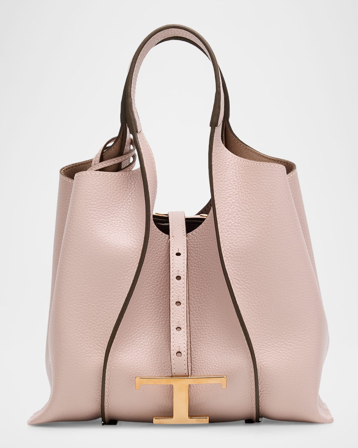 This Tod's shopping tote bag is defined with dimensional ribbing, adding flowing lines and texture to the soft grained calfskin leather Flat shoulder straps Open top with metal T Timeless pendant strap accessory Internal side snap straps for versatile shape Interior, removable zip top pouch Feet protect the bottom of the bag Approx. 7.7"H x 11.8"W x 4.7"D Made in Italy