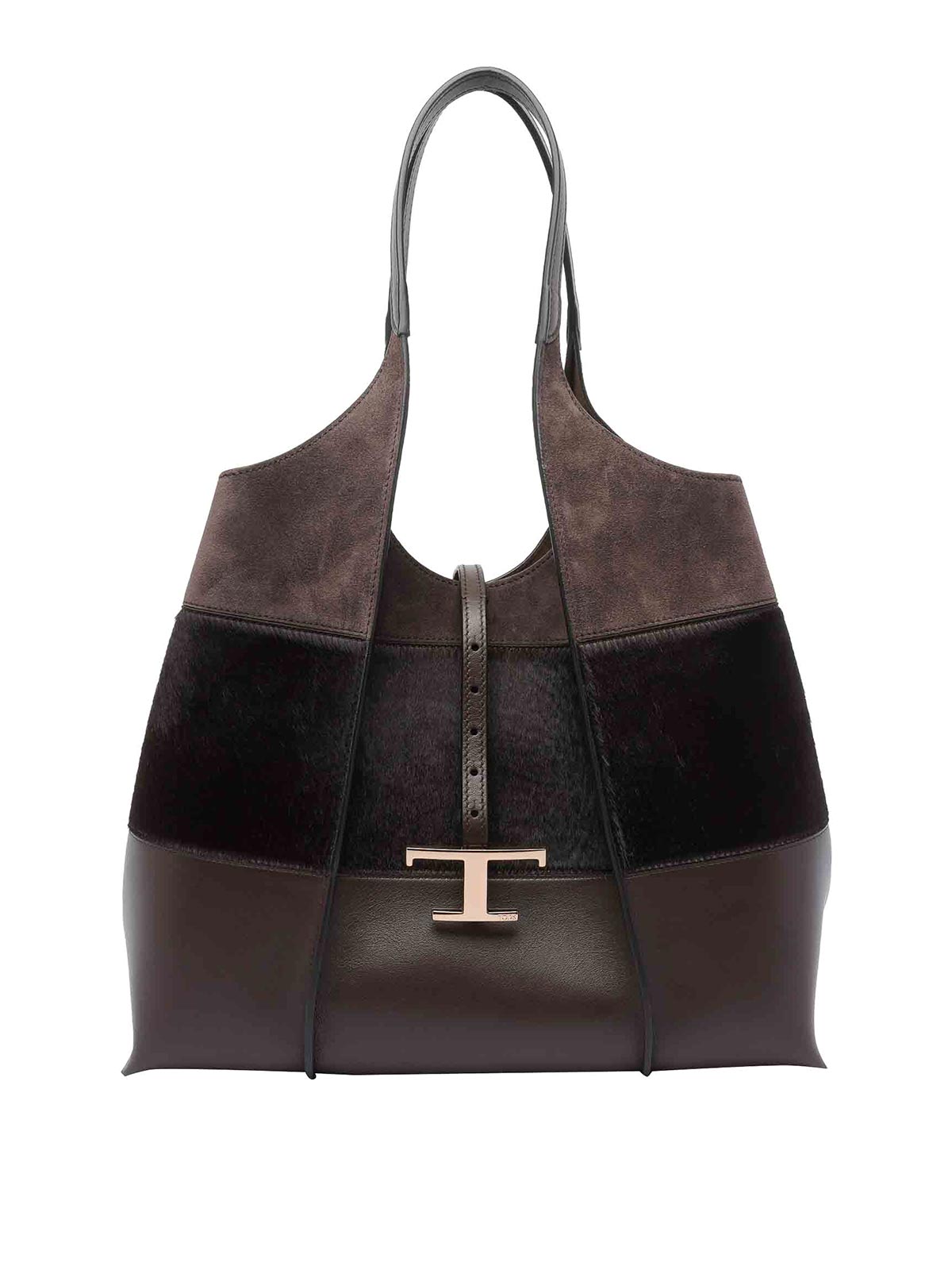 Sac à main Tod's marron et intemporel, modèle moyen, fermeture à clip, pochette intérieure amovible avec fermeture éclair, 2 poignées