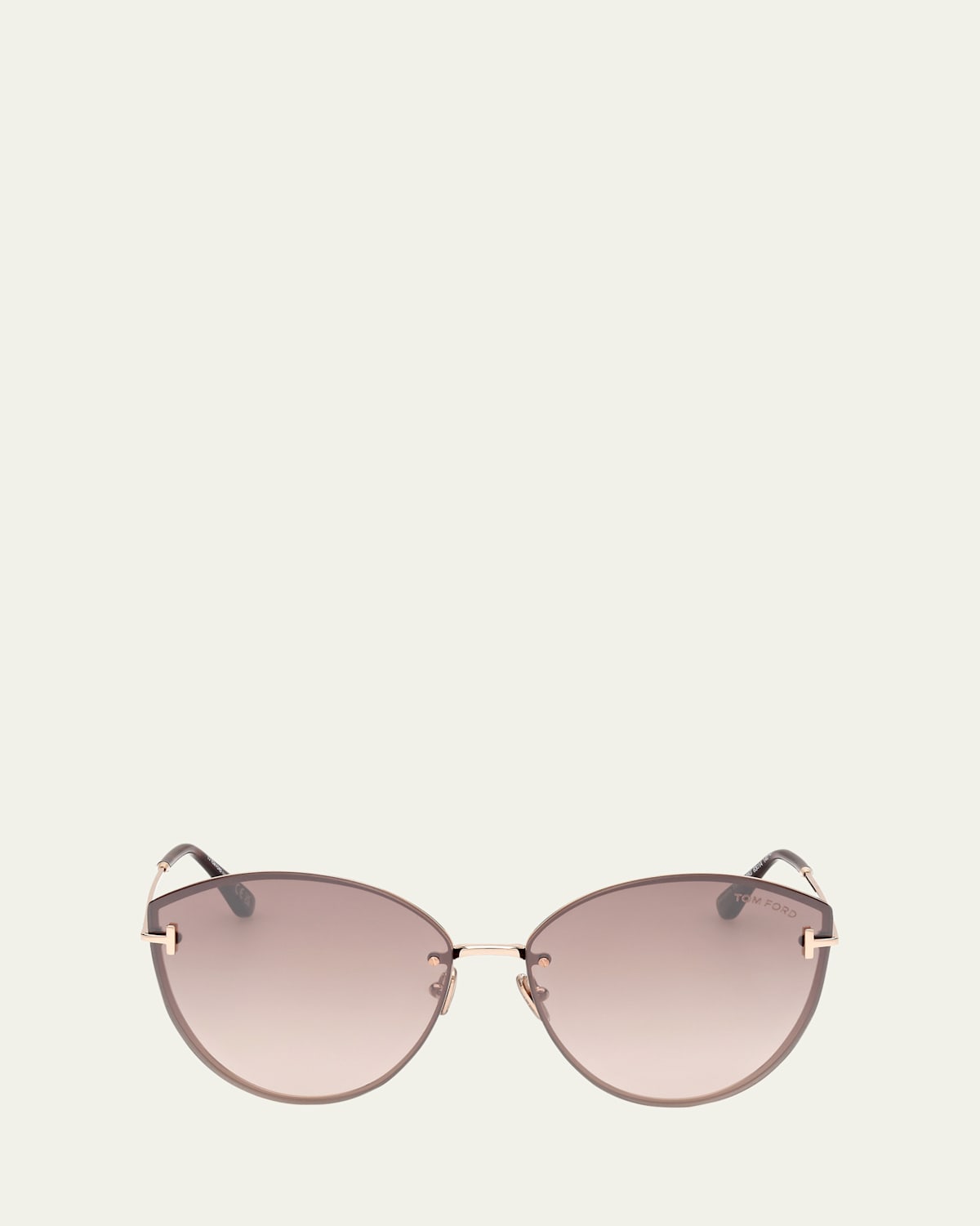 TOM FORD "Evangeline" cateye sunglasses in metal Lens/bridge/temple (in mm): 6314140 Gradient lenses; logo on corner Adjustable nose pads Signature T hinges Thin, tapered arms Capped earpieces Spot clean 100% UVA/UVB protection Made in Italy