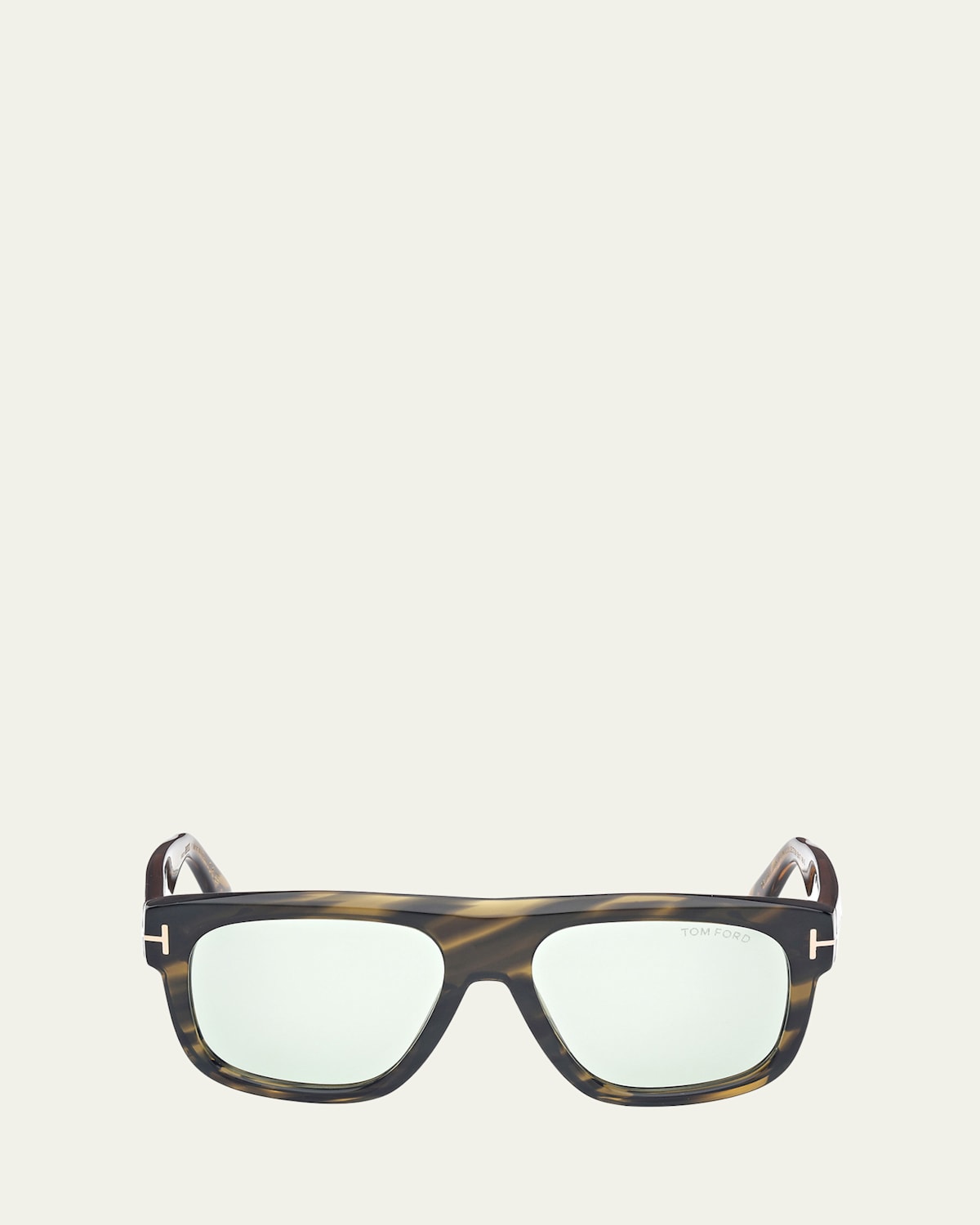TOM FORD "Icon" aviator sunglasses in acetate Eye/bridge/temple (in mm): 5617145 Solidcolor lenses; logo on corner Signature T hinges Wide, tapered arms Spot clean 100% UVA/UVB protection Made in Italy