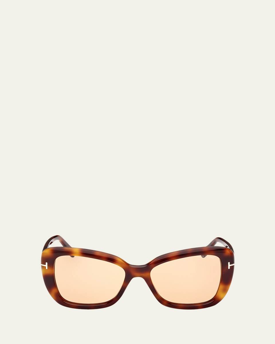 TOM FORD "Maeve" butterfly sunglasses in Havana acetate Lens/bridge/temple (in mm): 55 17 140 Logo on lens Saddle nose bridge Signature T hinges Thin, tapered arms Logo embellishment on earpieces 100% UVA/UVB protection Made in Italy