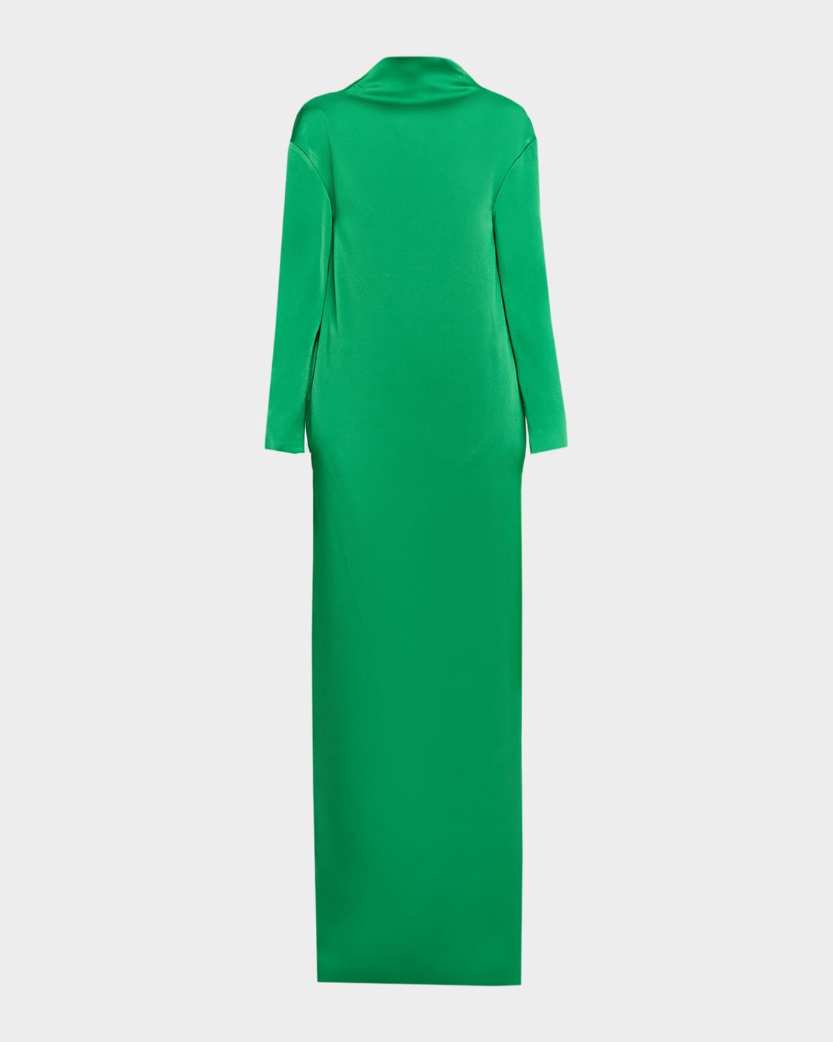 Tom Ford dress sculpts elegant drama with a glossy crepe, a low V back, and a back slit Mock neckline Long sleeves Side split pockets Column silhouette Floor length Slip on style Acetate/viscose Made in Italy
