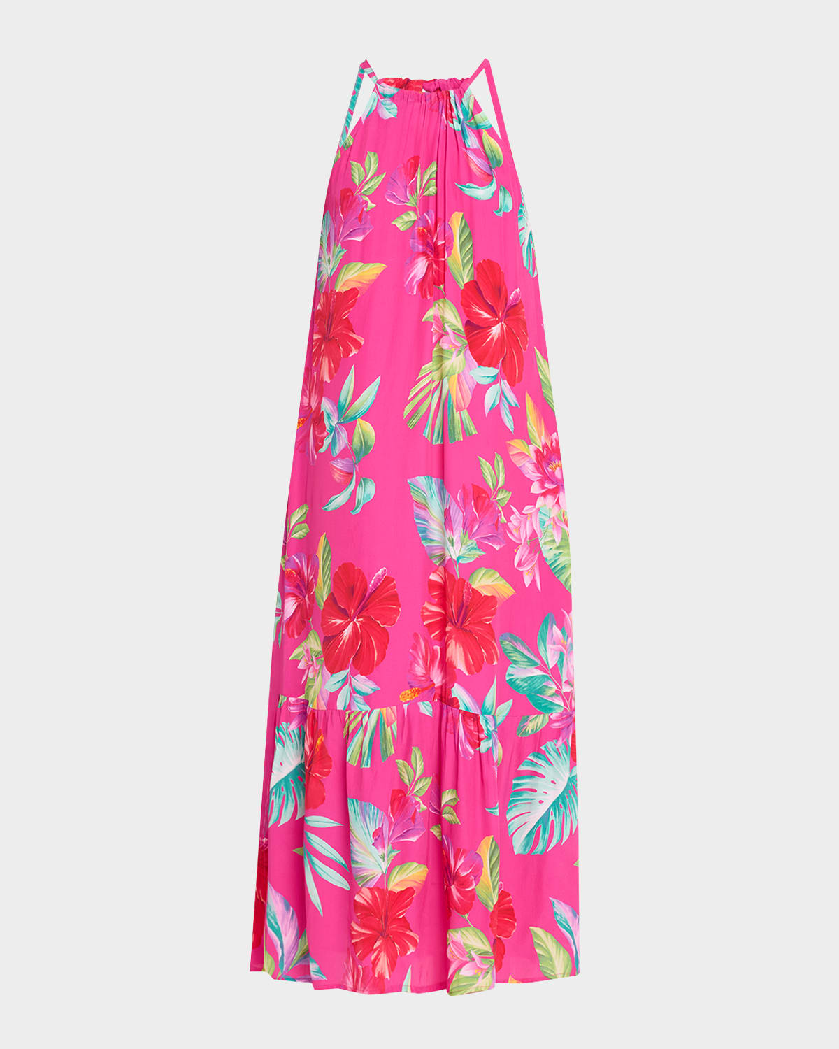 Tommy Bahama maxi dress in vibrant Fiesta Floral print Approx. 46.5"L from shoulder to hem High neckline Sleeveless Full length Aline silhouette Back selfties Viscose Unlined Hand wash Imported
