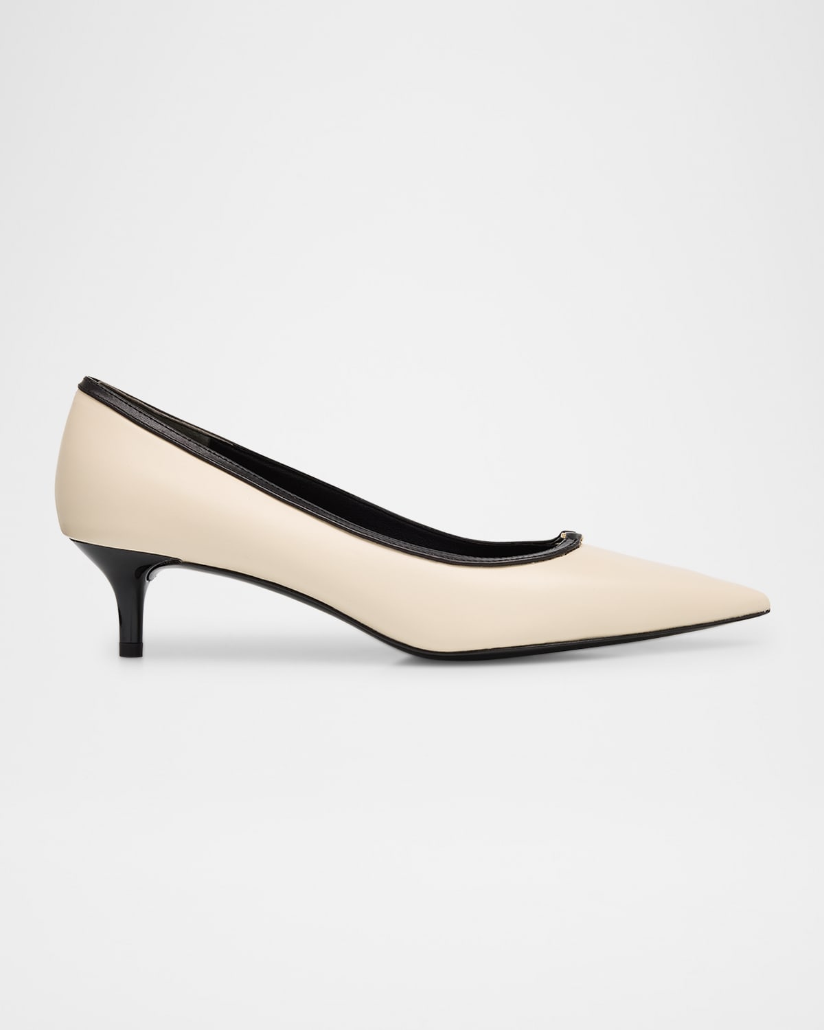 Minimal and timeless, this pump by Tory Burch features a discreet Double T front buckle detail. Crafted in smooth calf leather with a cushioned footbed, the elegant heel is a yearround wardrobe staple 1.75 in / 45 mm kitten heel Pointed toe Slipon style Leather/Rubber outsole Lining: Leather Imported