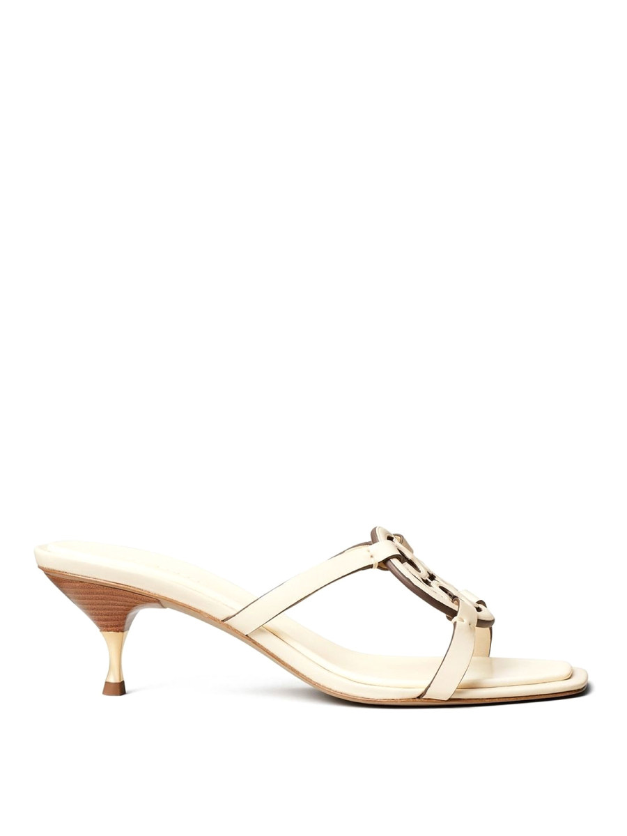 Sandales en cuir Geo Bombe Miller 55 mm de Tory Burch dotées de cuir blanc crème, d'une doublure en cuir, d'une semelle intérieure en cuir de marque, d'une plaque logo, d'un bout ouvert, d'un style à enfiler et d'un talon bas.