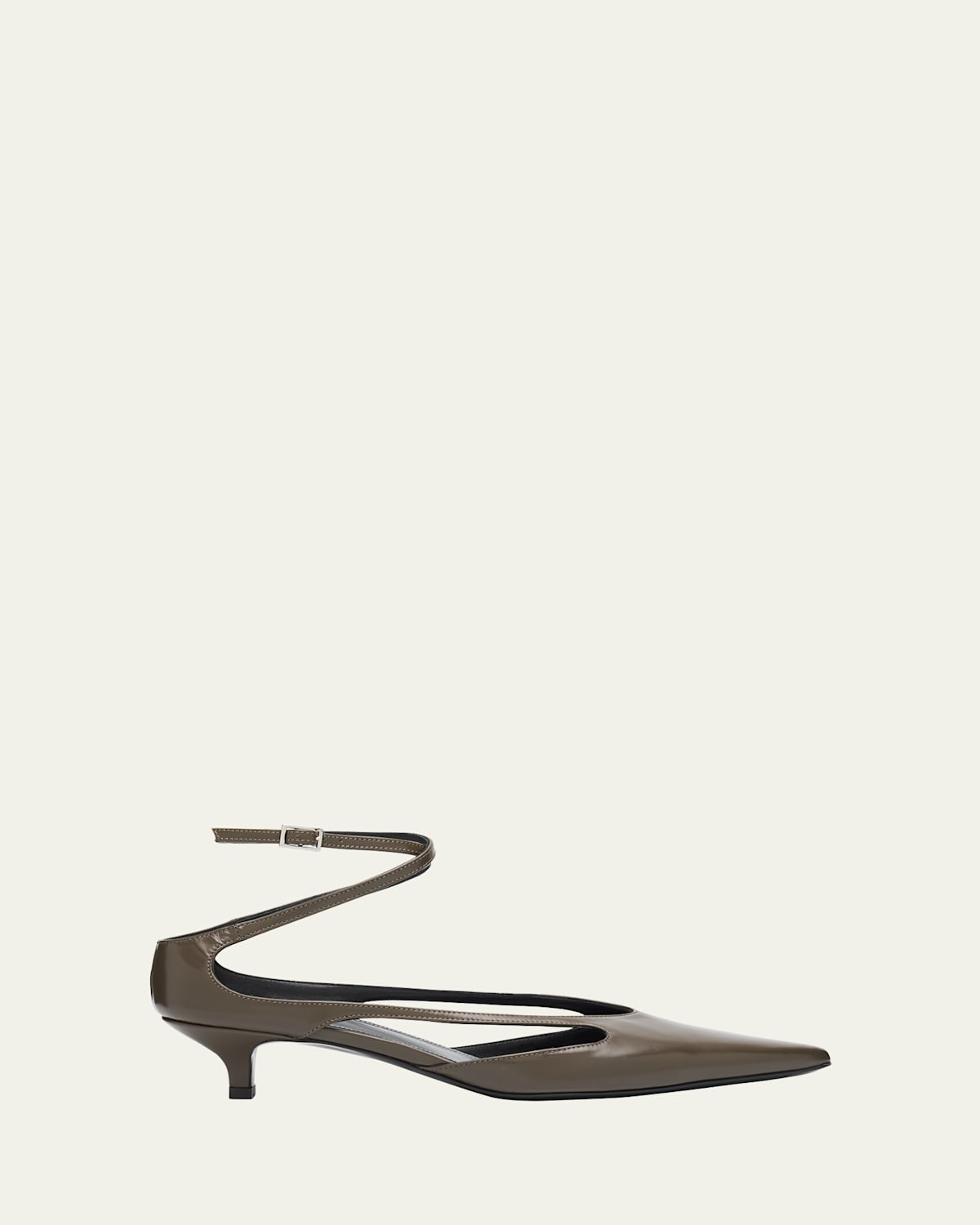Bold side cutouts and wraparound ankle straps elevate these sleek, smooth leather pumps by Toteme 1.38 in / 35 mm covered kitten heel Pointed toe Adjustable buckle strap Leather lining and outsole Made in Italy