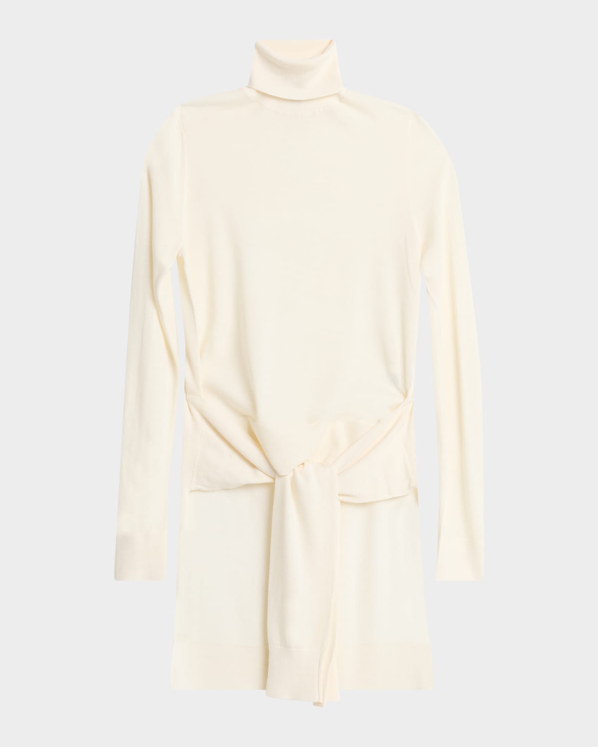 Finely knitted from a luxurious blend of wool and silk, this sweater by Toteme features additional sleeves at the hips that create the illusion of a second sweater casually tied around the waist Turtleneck Long sleeves Slim fit Hip length Pullover style Wool/silk Hand wash Imported