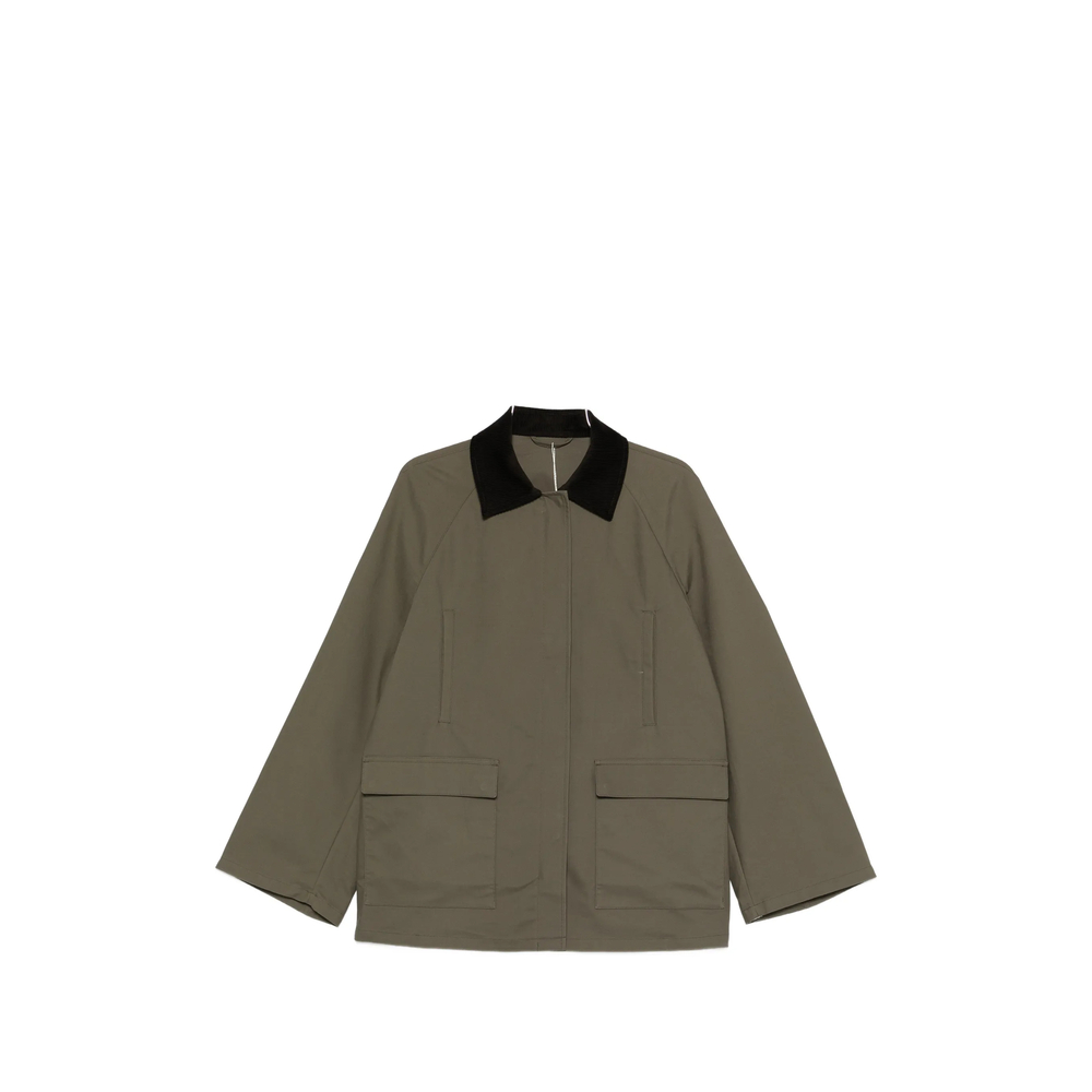 green flap pockets corduroy collar long sleeves straight hem