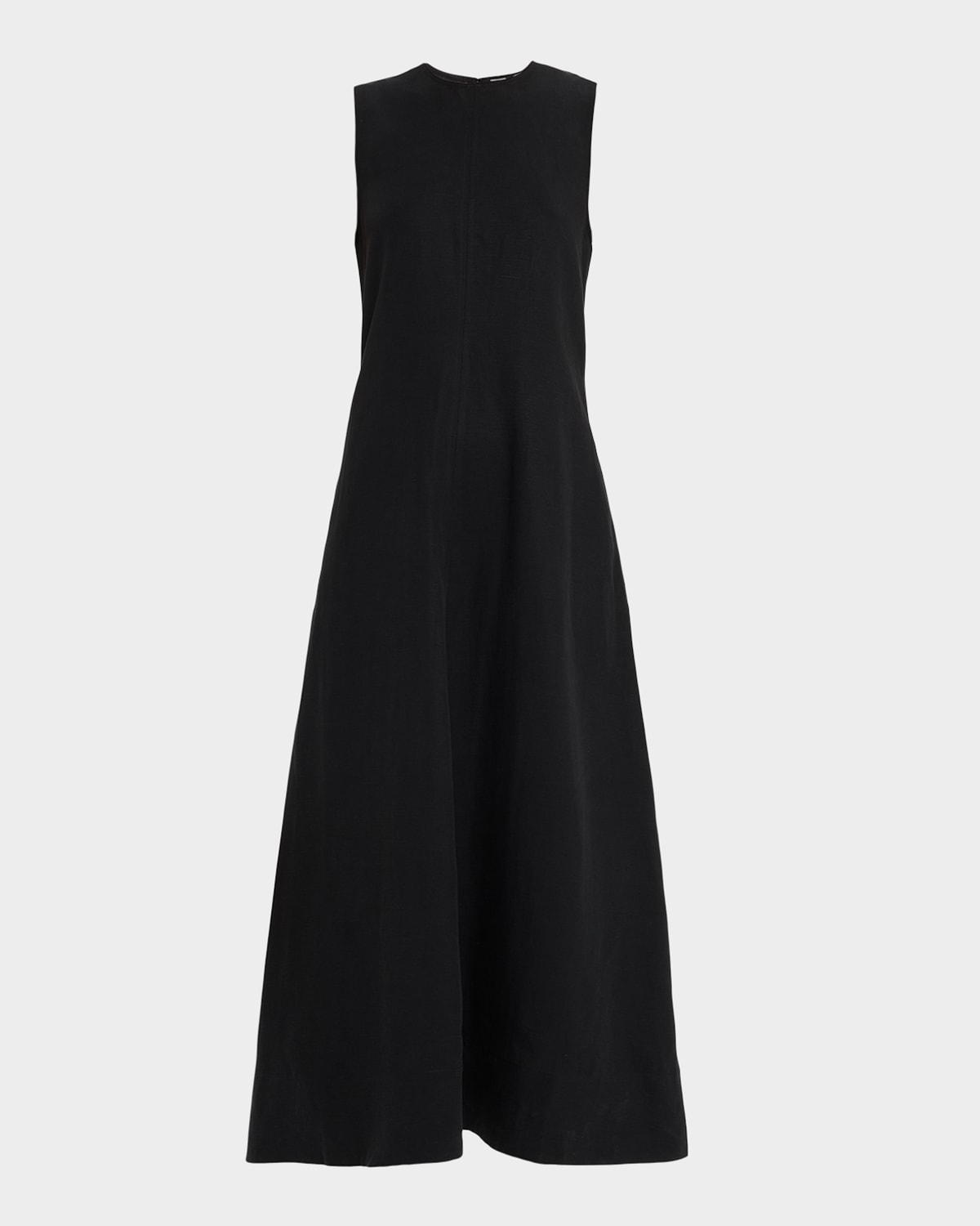 A study of the classic black dress, this Toteme summer dress is crafted of a fluid cotton, allowing for a comfortable yet sophisticated silhouette Round neckline Sleeveless Side split pockets Hem falls below the knee Aline silhouette Back zip Cotton Made in Italy