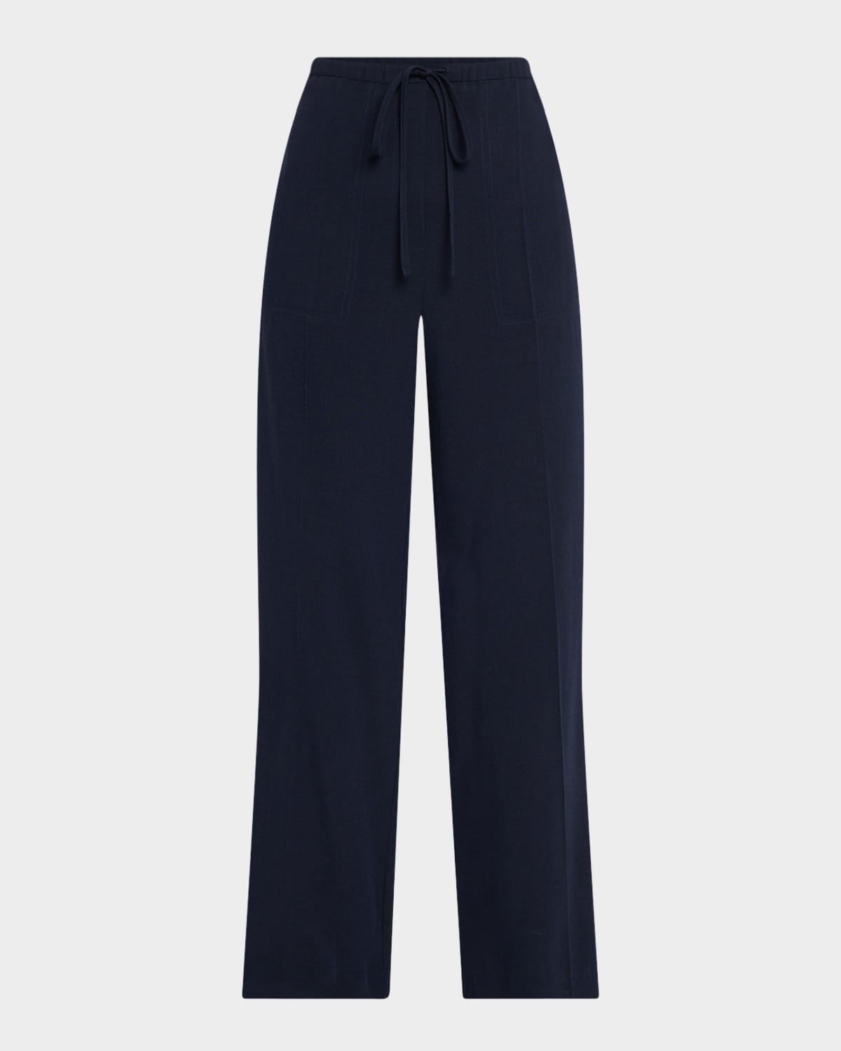 Made from lightweight fluid canvas with a touch of wool for added warmth, these trousers by Toteme offer a laidback silhouette with flared legs for a sculptural effect Midrise drawstring waistband Front and back patch pockets Full length Wide legs Pullon style Viscose/wool Dry clean Made in Lithuania