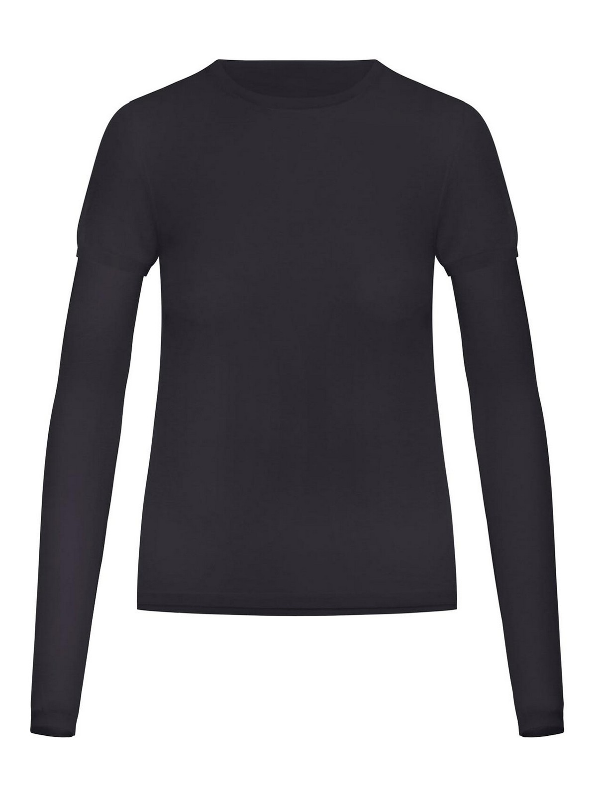 Col rond, demi-maille fine, transparent mélangé à, haut superposé, coupe classique