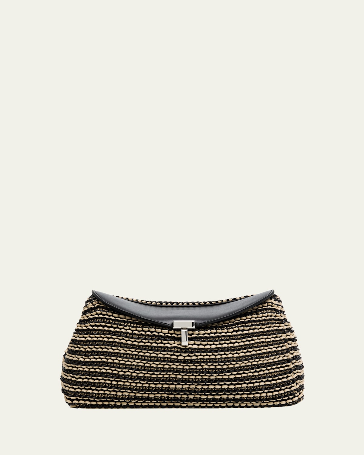 Toteme "TLock" clutch bag in smooth and woven leather Crossbody strap Can be worn as clutch or crossbody bag Flap top with T turnlock closure Interior, one card slot Lining: Polyurethane Approx. 5.5"H x 10.2"W x 3.3"D Made in Italy