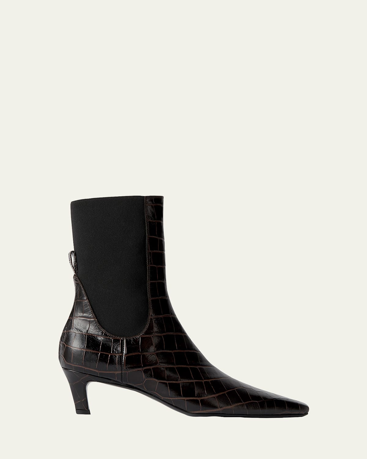 Toteme ankle booties in calf leather 1.00 in / 25 mm kitten heel Pointed toe Stretch fabric collar Pullon style Pulltab at backstay Smooth sole Made in Italy