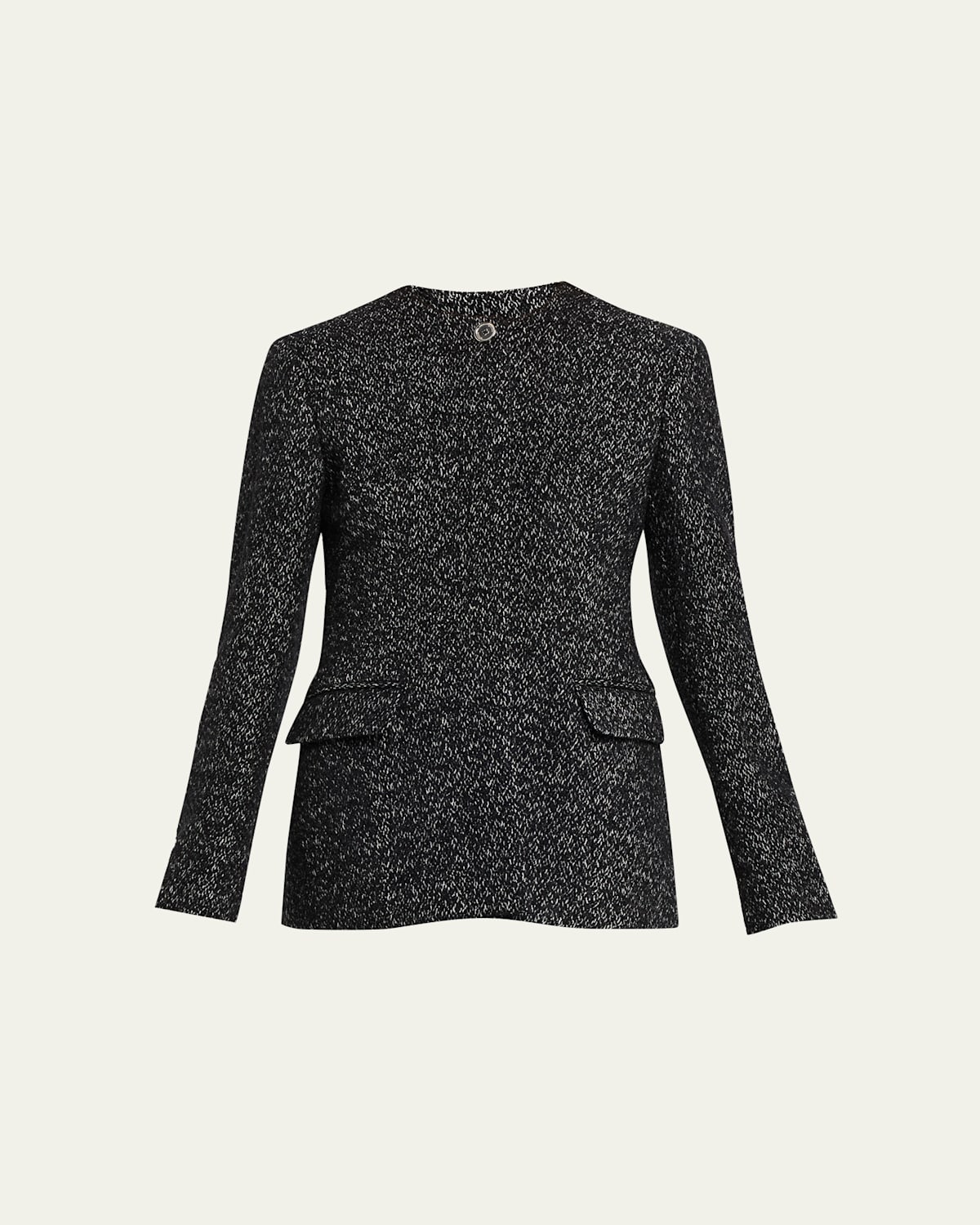 Made from a woolblend tweed, this suit jacket by Toteme features a flattering slim silhouette cinched at the waist with long darts Collarless neckline Long sleeves Hip flap pockets Midlength Partially concealed placket Wool/polyester Made in Romania