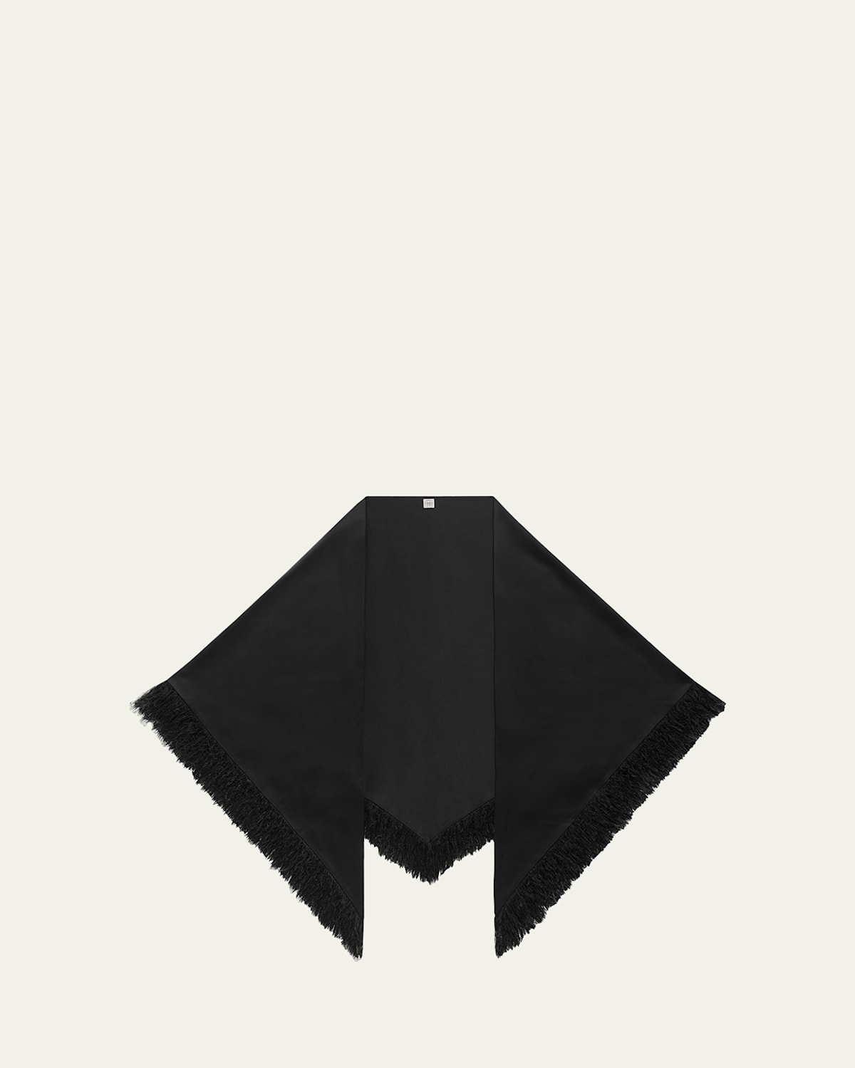 Toteme wool triangle scarf decorated with decadent featherlike fringe Approx. 98.43"L x 19.6"W Fringe trim Style it with the coordinating skirt as part of an occasion look Wool Dry clean Made in Lithuania