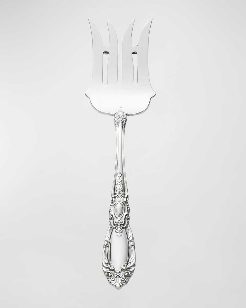 Meat fork is made of sterling silver Ornate detailing on handle Approx. 8.3"L Sold individually Item Weight: 1.0 lbs Dishwasher safe, hand wash Made in USA