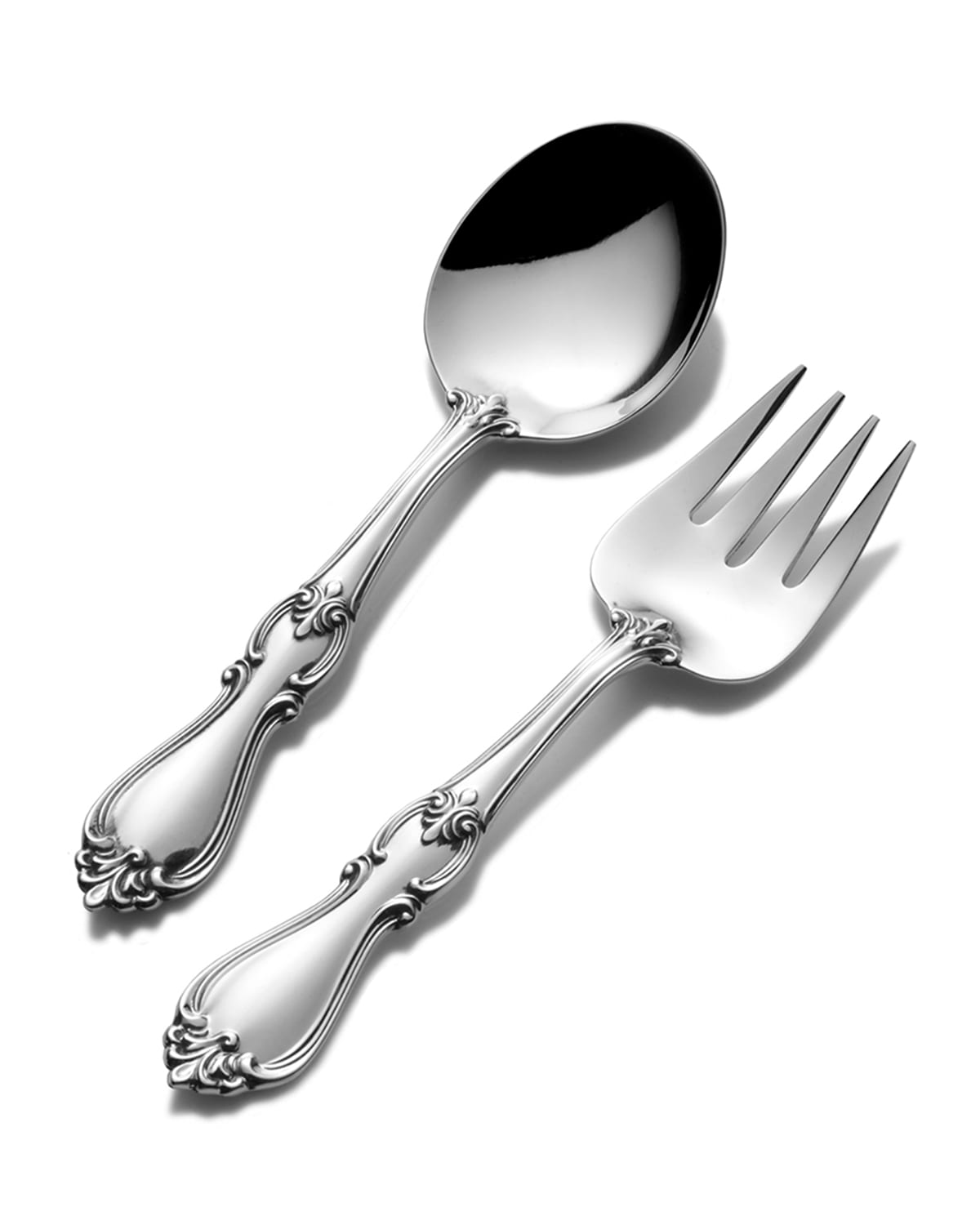 Inspired by the popular sterling flatware pattern, the Queen Elizabeth baby set will make a shining contribution to baby's earliest years. New parents will notice your good taste for generations to come with this heirloom gift. Beautifully gift boxed with flannel storage bag. Fork: 4.5"L. Spoon: 4.25"L. Made in the USA.