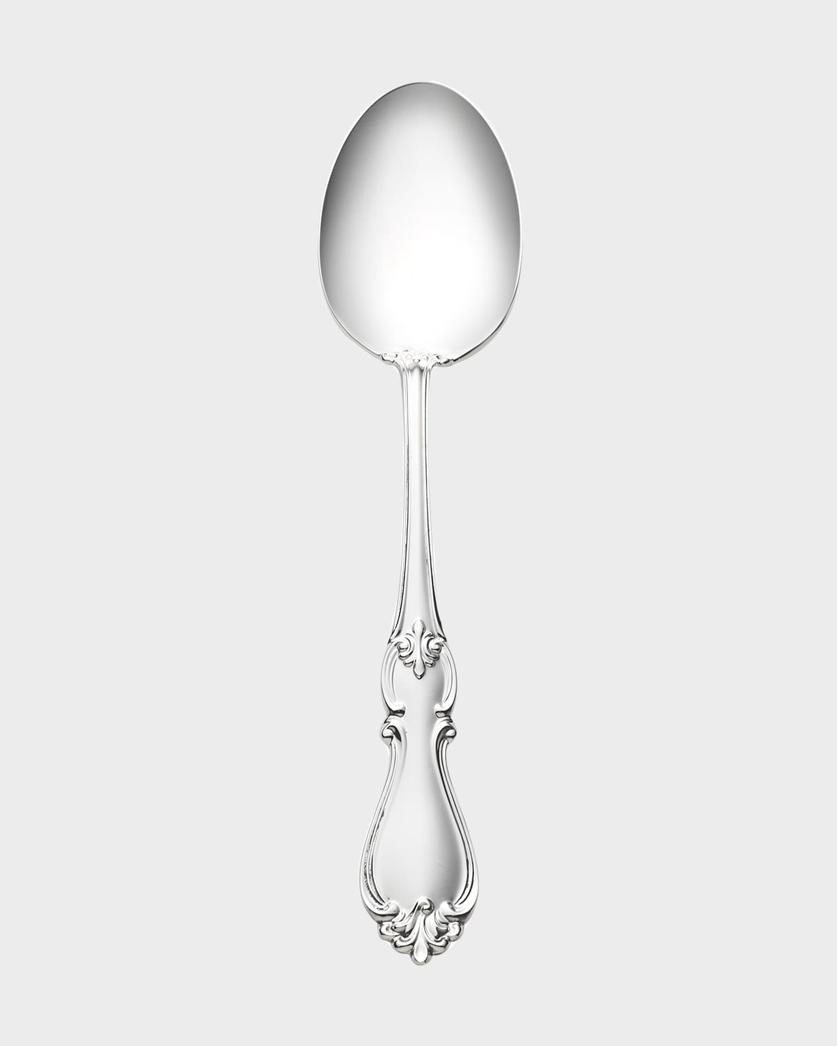 All purpose serving spoon. Made of sterling silver. Dishwasher safe, remove before drying cycle. Made in the USA.