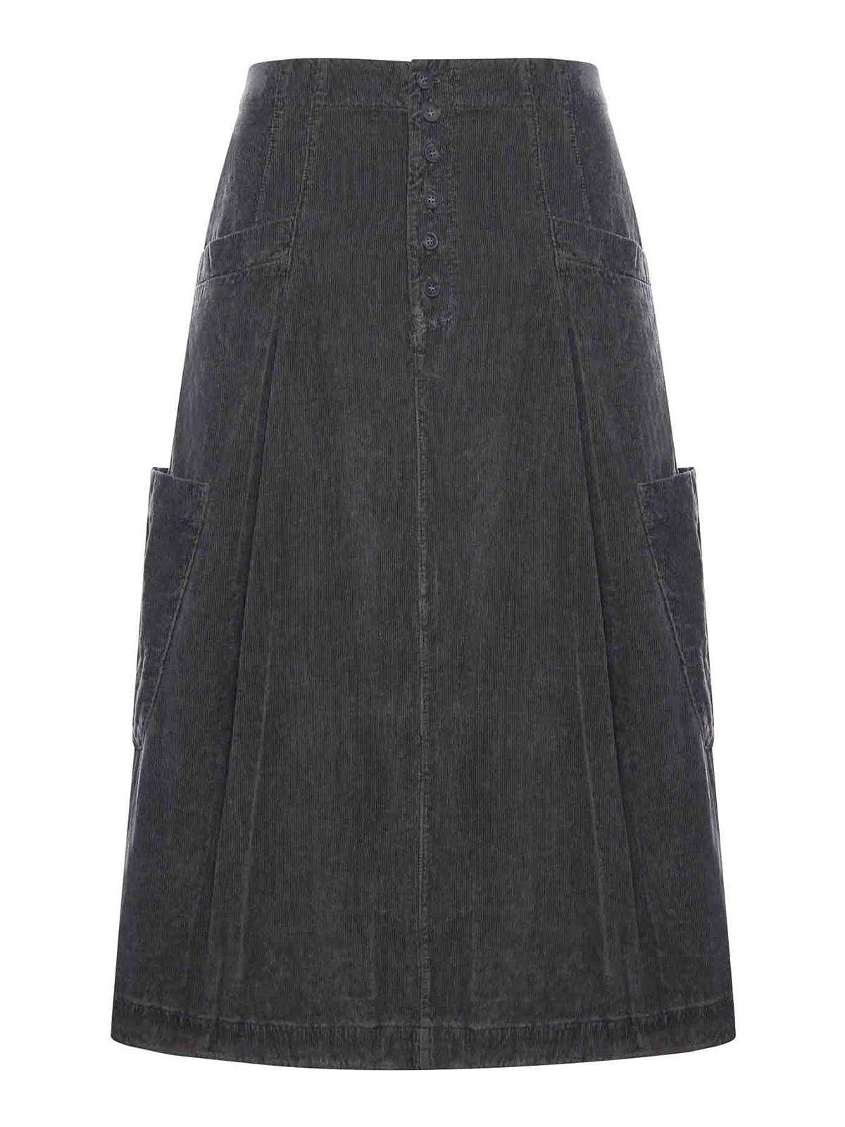Longueur, cordon de serrage en bas, coupe confortable, ceinture élastiquée dans le dos, patte de boutonnage apparente, poches avec entrée passepoilée en haut, poches latérales plaquées, stretch gaufré, côtes en velours côtelé, vêtement, teinture, couleur anthracite