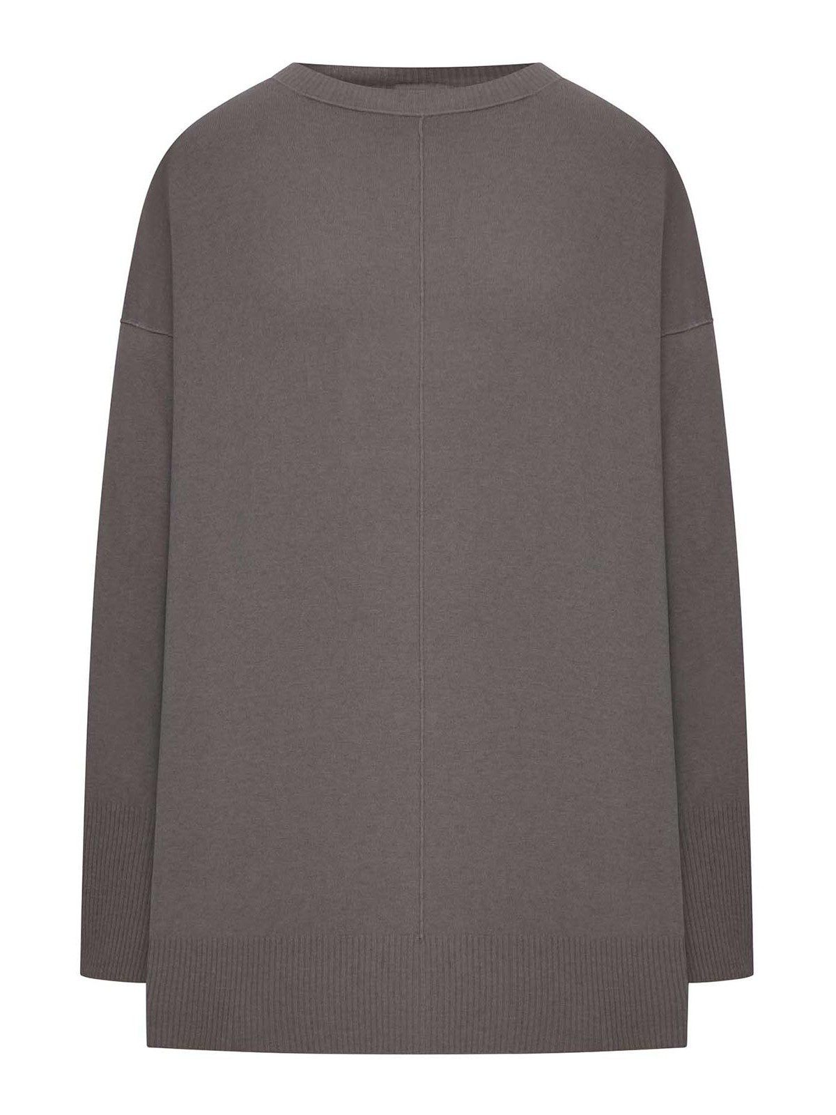 Col rond, manches longues, ourlet droit, épaules légèrement tombantes, poignets et ourlet côtelés, - mélange, couleur grise