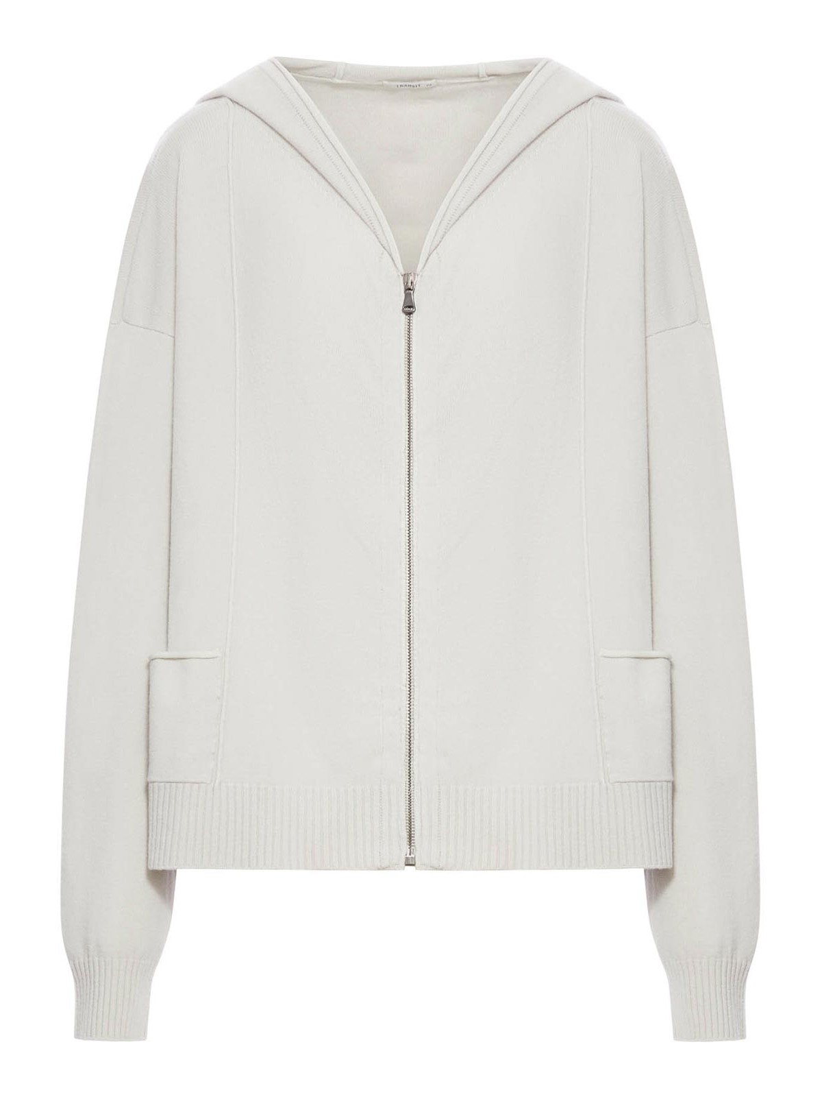 Capuche, maille unie mélangée, poches plaquées, manches longues, poignets et ourlet côtelés, boutons apparents, vêtement, teint, non doublé, coupe oversize, couleur craie