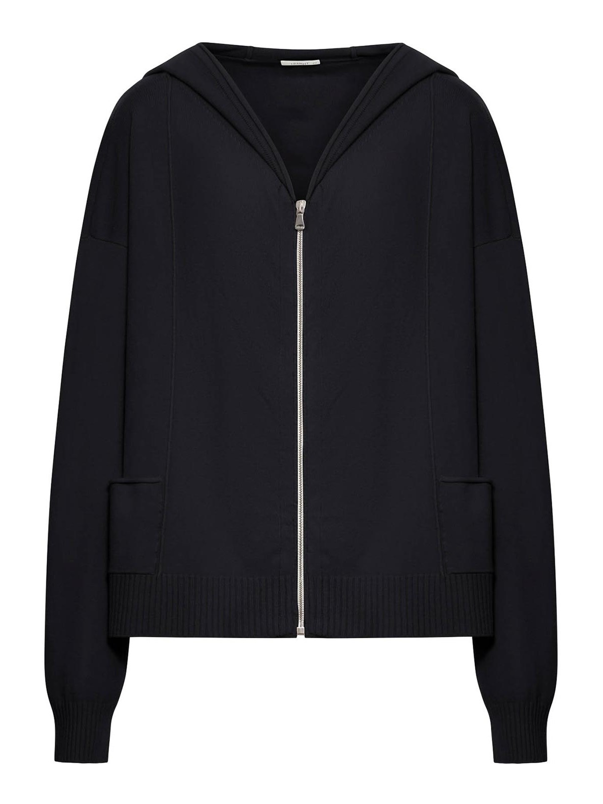 Capuche, maille unie mélangée, poches plaquées, manches longues, poignets et ourlet côtelés, boutons apparents, vêtement, teint, non doublé, coupe oversize, couleur noire
