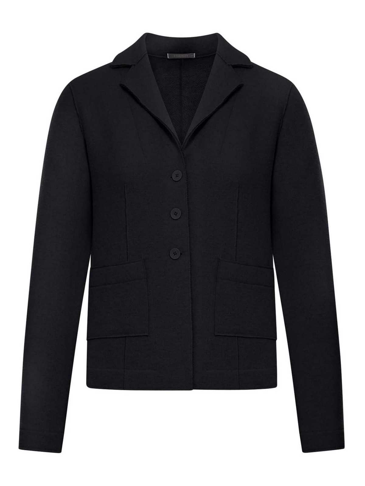 Veste non doublée- coupe ajustée- motif à chevrons sur un côté- col à revers et plis au dos- deux poches plaquées- surpiqûres sur toutes les coutures- couleur noir/anthracite/chevrons