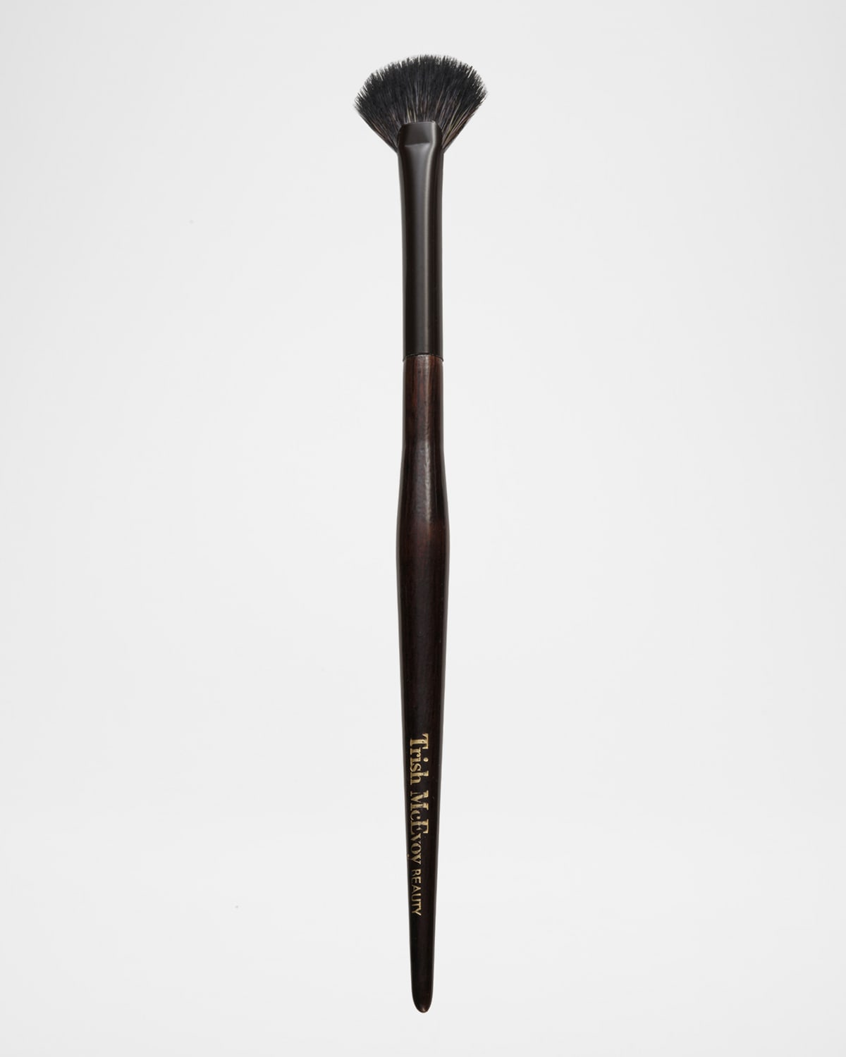 A sculpting essential. This precision fan brush offers whispersoft application for highlighter, powder, or subtle contour. Crafted with a lacquered wooden handle for refined control and effortless blending. How to Use: Sweep across the tops of cheekbones, bridge of nose, or collarbone to softly illuminate, set, or dust away excess powder. Approx. 5.5"L Made in