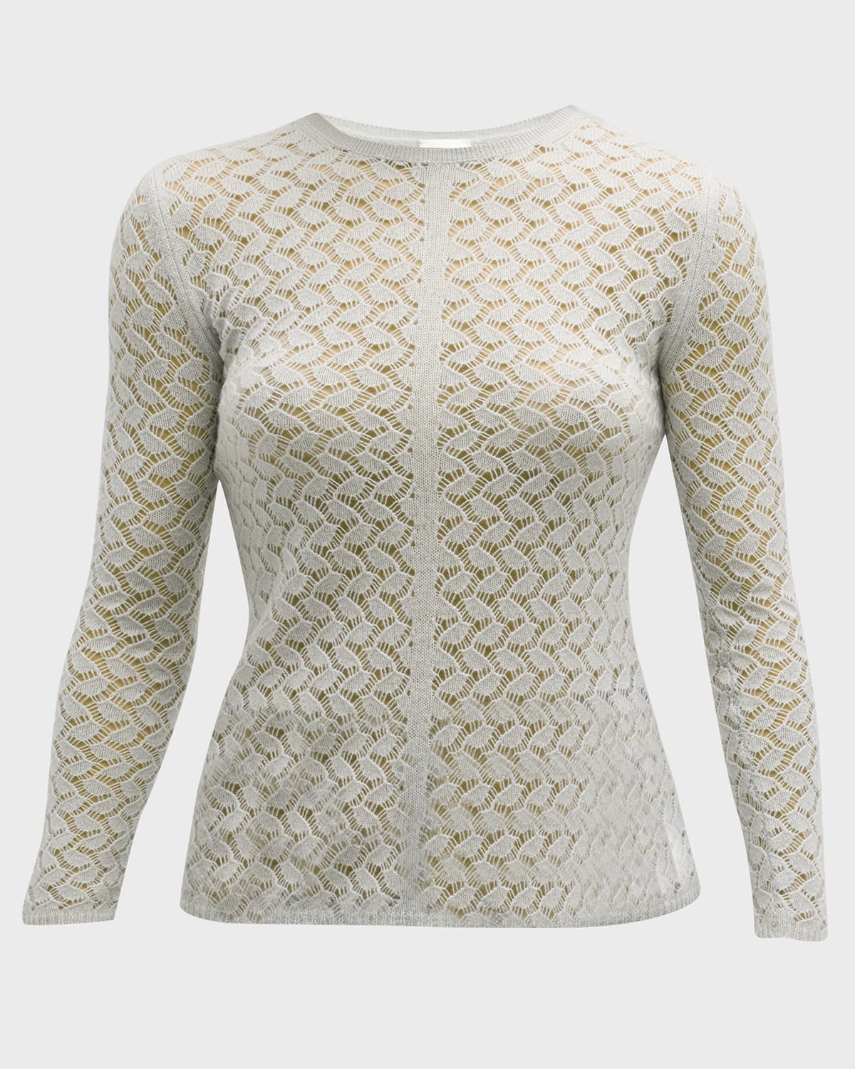 Open-Stitch Crewneck Cashmere Sweat