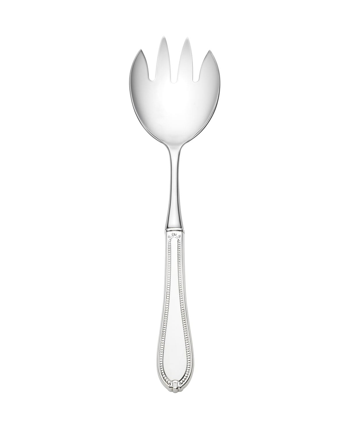 Salad serving fork made of sterling silver. Stainless steel blade. Hollow handle. Made in the USA.