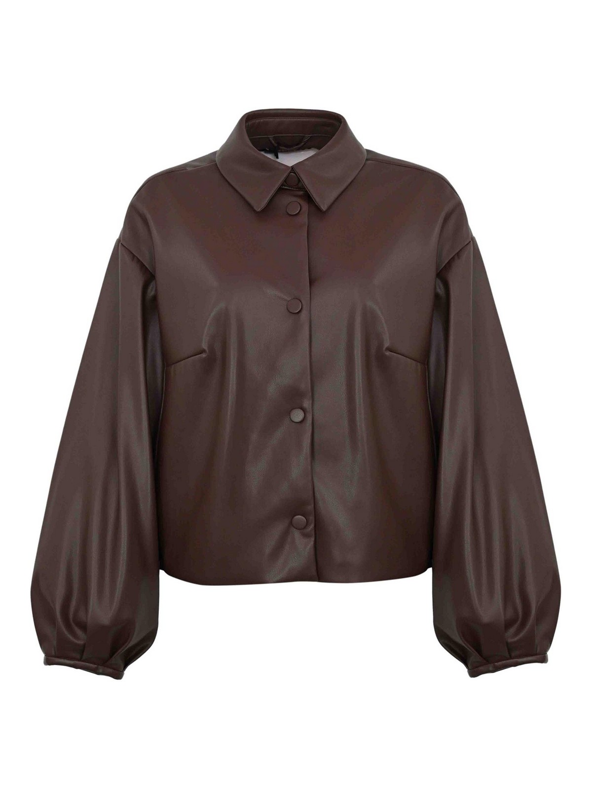 Manches longues, effet enduit, col classique, poches latérales boutonnées, plaque en T ovale au dos, coupe droite