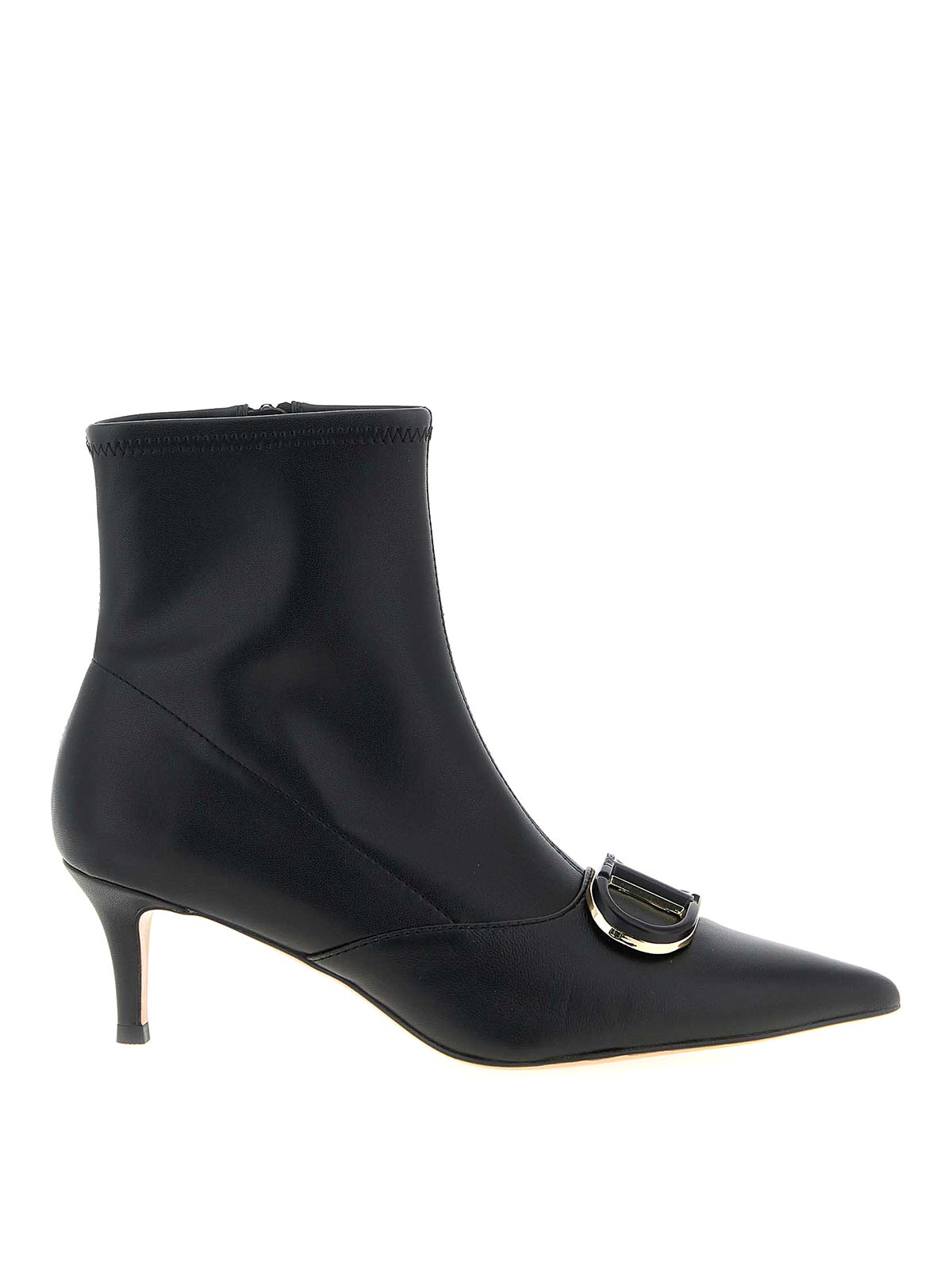 Bottines en cuir, modèle à effet pointu avec double couche « ovale » sur la cheville élastiquée, fermeture éclair latérale