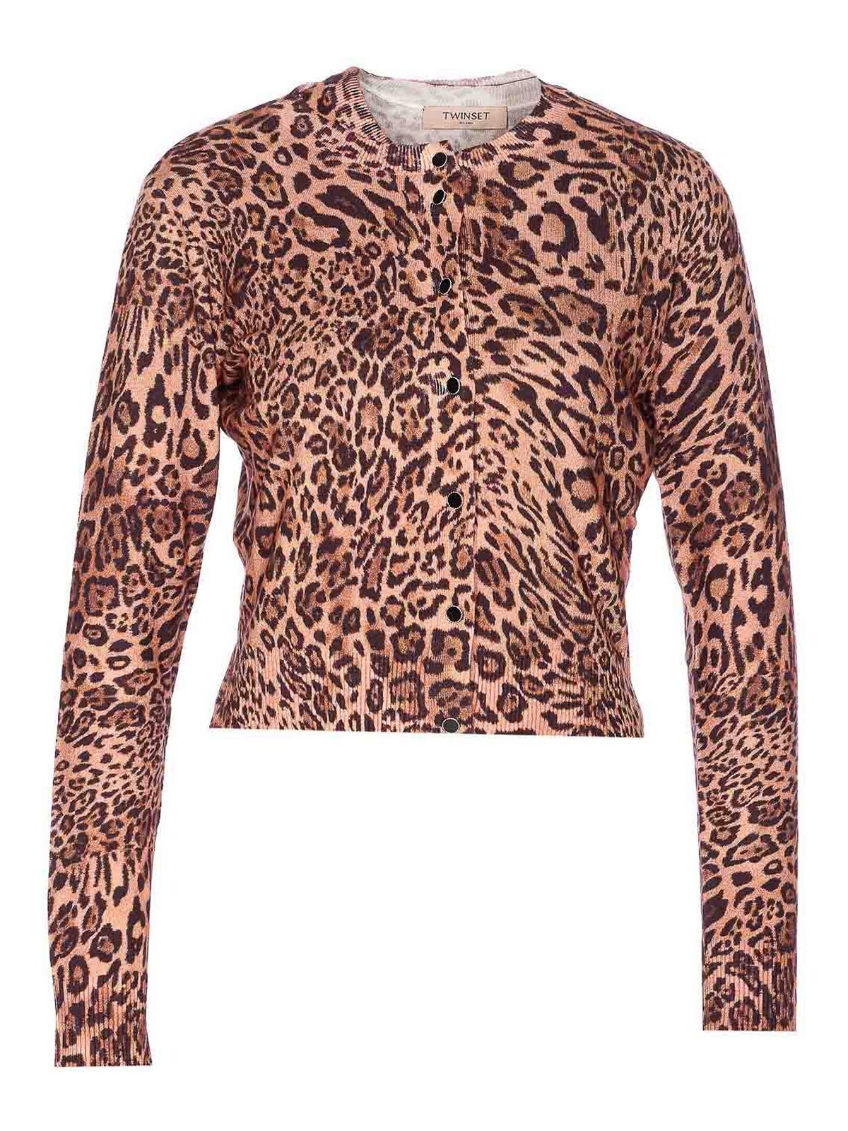 Cardigan et t-shirt Twinset Leo Twinset Twinset Twinset au dos tricoté avec logo animalier