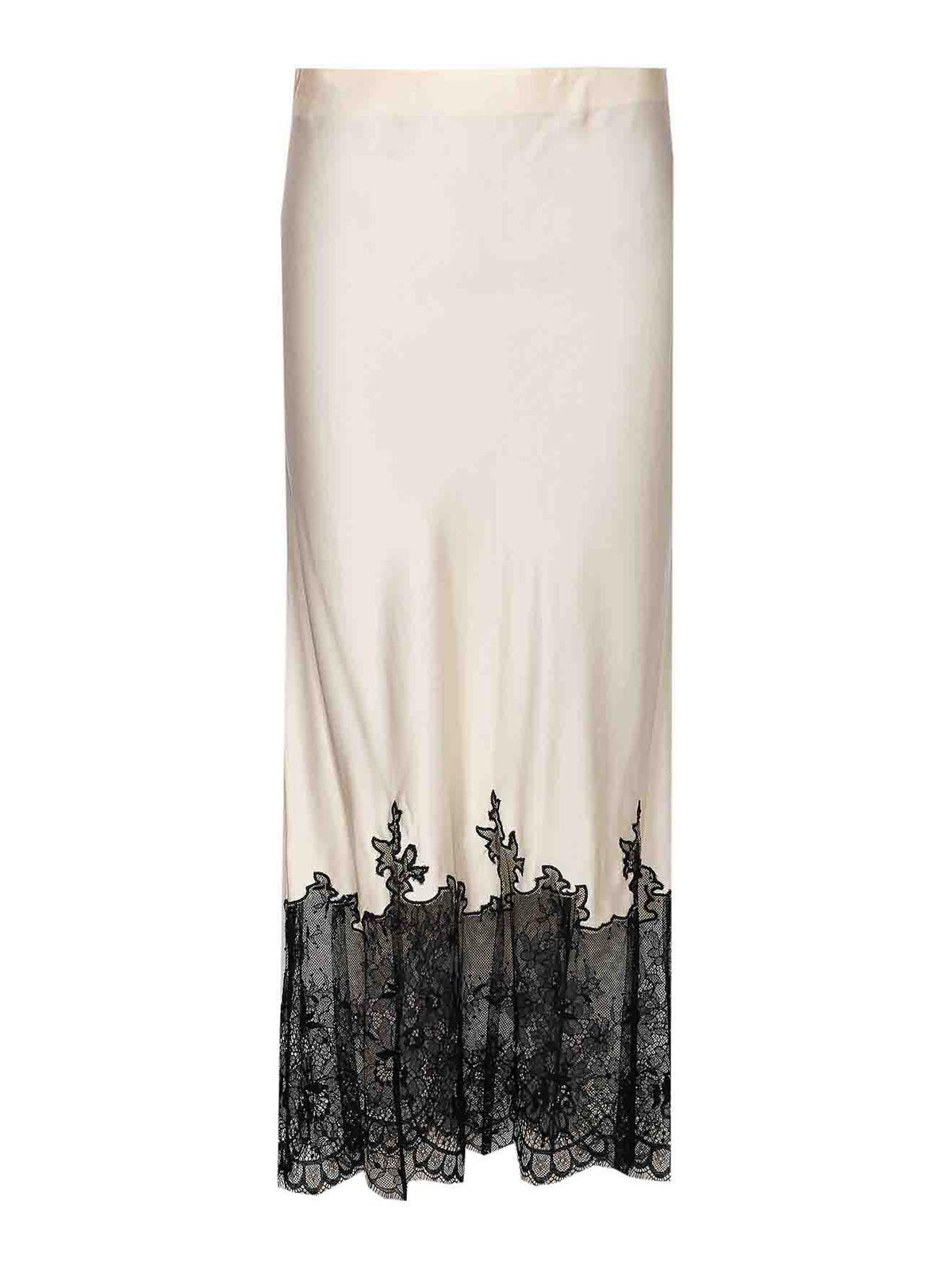 Jupe ivoire Twinset, fermeture éclair latérale et crochet, dentelle en bas, modèle midi, nom de la couleur du créateur: blanc